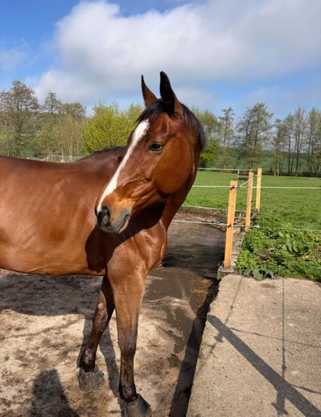 Unsere wunderschöne, 9-jährige Stute (ca. 1,72 m groß) sucht ihren Menschen fürs Leben. Sie ist ein echtes Pferd zum Verlieben – mit einem Charakter, der jeden Tag aufs Neue berührt. Diese tolle Stute ist brav im Umgang, verschmust, menschenbezogen und ein absoluter Schatz im Gelände. Ob allein oder in der Gruppe – sie ist immer verlässlich und gut gelaunt unterwegs. Sie wurde bisher sportmäßig geritten, zeigt sich dabei stets motiviert und aufmerksam, braucht aber einen reiterfahrenen Menschen, der sie liebevoll und einfühlsam reitet. Leider liegt ein Befund vor, der sie für den reinen Sporteinsatz nicht mehr geeignet macht. Für den Freizeitbereich oder als treue Partnerin für gemütliche Ausritte, Bodenarbeit, Spaziergänge oder leichte Dressurarbeit ist sie aber bestens geeignet. Wenn du ein Pferd suchst, das dein Herz im Sturm erobert, das dich ehrlich ansieht und dir jeden Tag ein Lächeln schenkt – dann ist sie genau dein Pferd. 🫶 Nur in allerbeste, erfahrene und liebevolle Hände abzugeben. 💌 Bei ernsthaftem Interesse erzählen wir gern mehr über diese wundervolle Stute