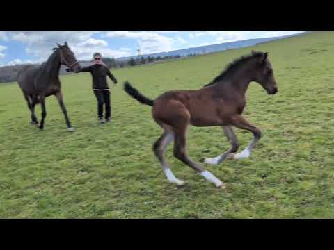Absolut korrektes, bewegungsstarkes Stutfohlen aus der Verbandsprämienstute Chicofina. Nachzucht der Mutter ist bereits im Springsport unterwegs. Dancing Diana ist ein Halfter führig, Menschen zugewandtes bildhübsches Tier.