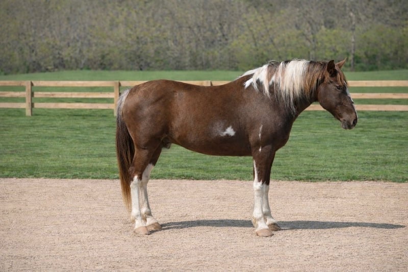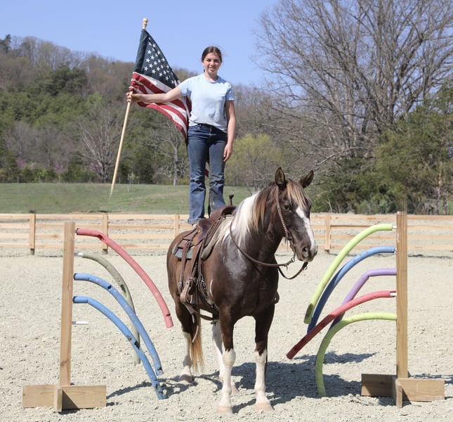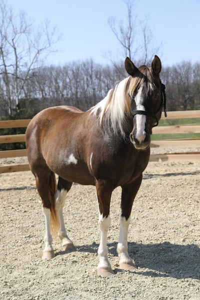 Smores, yegua de 12 años, de 1,55 m, potro de silla con manchas blancas y chocolate