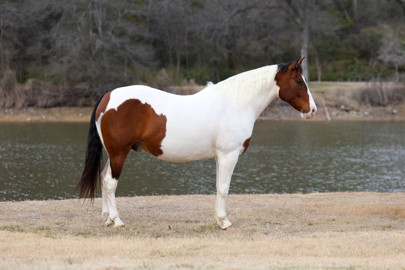 ⚜️𝐭𝐡𝐞 𝓔𝓵𝓲𝓽𝓮 𝐒𝐩𝐫𝐢𝐧𝐠 𝐂𝐥𝐚𝐬𝐬𝐢𝐜⚜️ Happening now thru MONDAY | APRIL 20th - Available EXCLUSIVELY on HorseBid's website! For more details and to register visit: www.Horsebid.com CONSIGNOR CONTACT: Triple M Ranch 469-318-1902 LOCATION: Talty, TX BREED: Paint Crossbred REGISTERED: No REGISTERED NAME: Dill Pickle COLOR: Bay/White Paint HEIGHT: 15.3 AGE: 10 GENDER: Gelding 🥒🥒Introducing Dill Pickle🥒🥒!! He is a gorgeous bay and white paint crossbred gelding. He stands 15.3 hands tall and weighs just a little over 1350 lbs. His crossbred side really shows in how stout and wide he is. He has a lot of bone and foot to him. But the perfect size and has a lot of athleticism. To me he is the perfect mix to make him the perfect all around using size. And he is just 10 yrs and has his whole life ahead of him. 🥒 Dill Pickle is one you can take to the shows or hit the trails on and truly enjoy. He is hands down a perfect all around family friendly and family favorite horse!!!! One that is bombproof and safe for anyone to ride!!! Let me say it again, he is SAFE for anyone to ride. He is at the perfect age of just 10 yrs old. 👉🏼SHOW EXPERIENCE: Dill Pickle is a natural in the show ring and on the cross country course. Rides both English and Western. Very versatile and athletic horse. Acts the same as he does at home. He's been shown at the local shows in 4H classes, English jumping, amateur English dressage, and also western ranch trail classes. Dill Pickle is the type you can enjoy and learn on. He's responsive to your seat and leg but not overly responsive or overly sensitive. He will go just as fast or as slow as you'd like. He's got a comfortable easy to sit rocking chair lope, automatic lead changes, an easy stop, and turns around correct and pretty. He's so open minded and willing. You could take him to the hunter classes and really hold your own! He packs his head low and correct and goes right to the jumps! Very pretty mover. Really picks up his knees and carries his self well. 👉🏼TRAIL&RANCH EXPERIENCE: Dill Pickle loves to trail ride!! Down the road, through the woods or take him swimming! He loves going new places!! He doesn't mind traffic, dogs or wildlife. He goes up and down the big hills carefully and easily and he goes right into the water! He loves to play and splash in the river! He will ride front, middle or back of the pack. Not at all buddy soured if you like going out on the trails alone. Been rode on a ranch and used to push cattle. Been roped of out in the pasture to help doctor sick calves. He would be perfect to help tend to a small herd or check fences on. The perfect weekend type horse. 👉🏼DISPOSITION: Dill Pickle is extremely sweet and loves being loved on. He comes right to you and puts his head in the halter. He loves kisses and having his ears scratched. Pickle is very quiet and easy to ride and be around. He is all for the rider trying new things or going new places. He is up for it. Even happy about it. He's got a very go with flow way about him. He doesn't get upset when his rider gets off balance or in his face. He's very forgiving if you mess up or give the wrong command. He would really make an excellent addition to a lesson program or just a casual rider wanting a very broke horse to enjoy! 👉🏼UPKEEP: Dill Pickle is an easy keeper. He's currently eating alfalfa hay. Which he could stay fat on weeds. When I say easy keeper. He requires nothing special. He is UTD on everything and currently barefoot. He does not need shoes. He does perfect barefoot. But has wore shoes plenty and very easy to shoe. Has good hard solid feet. 👉🏼LOADING: Dill Pickle loads and hauls like a dream. Very quiet and patient in and out of the trailer. He stands quietly tied to the trailer at the horse shows. No pawing or throwing a fit if left alone either. So makes it so easy if you want to go to the shows or trail rides with just one horse. 👉🏼TURNOUT: Dill Pickle can be by himself or in a group in the pasture. We've had him out with mares, geldings, mini ponies, mini cows, mini donkeys, etc.. without any fussing or drama. He is in the middle of the pecking order. Gets along with everyone. 👉🏼GROUND MANNERS: He is great on the ground. Respectful of personal space. He stands like a dream for grooming, washing, saddling, mounting block and he takes the bit easily. He will stand single tied and crosstied. Doesn't mind dogs, goats, small children around his feet. 👉🏼BAD HABITS/ VICES: Dill Pickle has absolutely NO bad habits or vices. Absolutely no buck, no rear, no bolt, no bite, or no kick. I cannot say it enough, this horse is a saint!!! He does not need to be warmed up or tuned up before you can go for a ride either. You can catch him straight out of the pasture and get on him. Even if it has been a few months since you rode him last. That’s a big plus in our books. Cause life gets busy and sometimes hard to make time to ride everyday. With him you don’t have to worry about that. 👉🏼TACK: We've ridden Dill Pickle in anything from a halter and lead rope bareback to a snaffle to a correction bit. Our go to bit of choice for him is a medium shank snaffle. English, western, bareback, backwards, sideways, forward, doesn’t matter to him. As long as he is getting attention from you he is happy!! 👉🏼SHIPPING: We can and will help arrange affordable shipping anywhere. He is up to date on all shots, feet, teeth, etc.. He is 100% ready for his new home. Ready to be rode and enjoyed. He is 100% sound and had a pre evaluation done by our vet (pic of it in the pictures). Buy with confidence that he is perfect in every way. Feel free to call us and visit with us about him. We love this horse and want to find him an amazing home!!