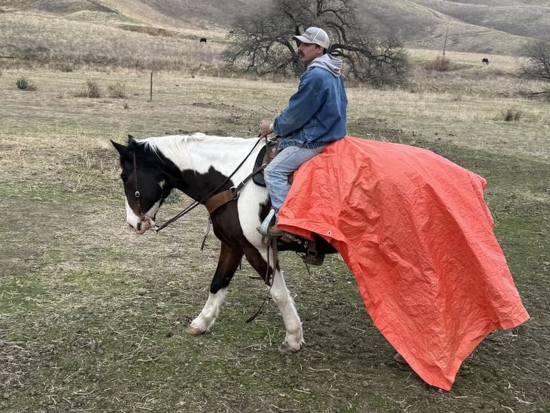 ONLINE-AUKTION Bieten Sie jetzt auf www.PlatinumEquineAuction.com Startpreis 3.500 USD Auktion endet am 29. Dezember 2024 Brauchen Sie ein neues Sattel? Schauen Sie sich White Rock Saddles auf unserer Website oder Facebook an! Lernen Sie Bison kennen… Das sanfte Riese, das Ihr neues Jahr unvergesslich machen wird! Dieser atemberaubende, 8-jährige dreifarbige Paint-Draft-Mix-Gelding beeindruckt mit einem blauen Auge und einer Größe von 16 Händen. Er vereint Kraft und Anmut in einer großen, treuen Seele. Bison begrüßt Sie am Tor und steckt seine Nase in den Halfter – er liebt Aufmerksamkeit. Ob Sie Rinder zusammen treiben, Kälber zum Feuer ziehen oder einfach eine gemütliche Runde durch malerische State Parks reiten, er geht ruhig allein oder in einer Gruppe von Freunden. Er ist sowohl auf Weiden mit Stuten und Wallachen als auch in Boxen zufrieden. Bison ist Ihr zuverlässiger Partner für jedes Abenteuer. Er überquert ruhigen Gewissens fließende Flüsse und schreitet elegant über umgestürzte Bäume, während er die Tierwelt mit Selbstvertrauen beobachtet. Mit seiner beeindruckenden Halsreinung und seinem Sliding Stop weiß er, wie man in der Arena die Führung übernimmt – perfekt für Reiter aller Erfahrungsstufen, vom Anfänger bis zum Fortgeschrittenen, und ein echtes Selbstvertrauensbooster. Er ist auch ein echter Star bei Umzügen und Paraden, bei denen er sich selbstbewusst präsentiert. Lassen Sie sich nicht von seinem guten Aussehen täuschen: Bison hat auch Hindernisse gemeistert – er navigiert problemlos über Brücken, durch Autowaschanlagen und sogar Reifen, egal ob in Englisch- oder Westernausrüstung. Er hat Flaggen getragen und lässt sich nicht durch Planen oder Bälle aus der Ruhe bringen – ein unkomplizierter, gelassener Kerl. Er reitet auch im Western- oder Englischsattel ohne Sattel, nur mit Halfter – man kann auf ihm stehen, vom Rücken rutschen oder überall herumklettern! Das Reiten auf ihm ist wie das Einsinken in ein bequemes Sofa; er ist so komfortabel wie nur möglich. Außerdem ist er leicht zu entwurmen, zu zeigen oder im Ort zu transportieren. Er hat keine Angst vor Autos, Sattelschleppern oder Fußgängern. Bison ist einfach zu satteln, steht gern zum Aufsteigen bereit und genießt die Pflege. Er ist rundum beschlagen und beim Hufschmied sehr zuverlässig. Wenn Sie nach einem besonderen Pferd suchen, das Herz und Vielseitigkeit vereint, wartet Bison auf Sie im Longhorn Ranch! Standort: Paicines, CA. Kontakt: Dina, 831-537-1915.