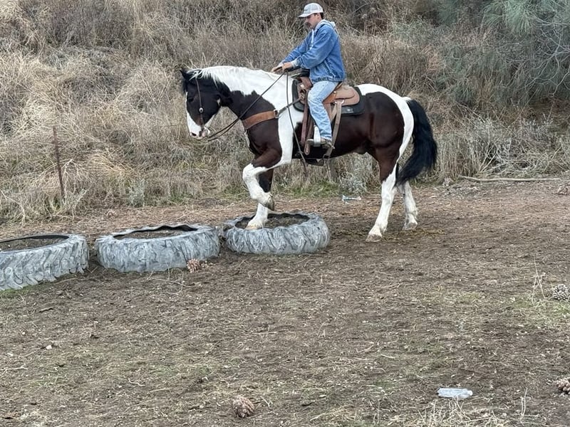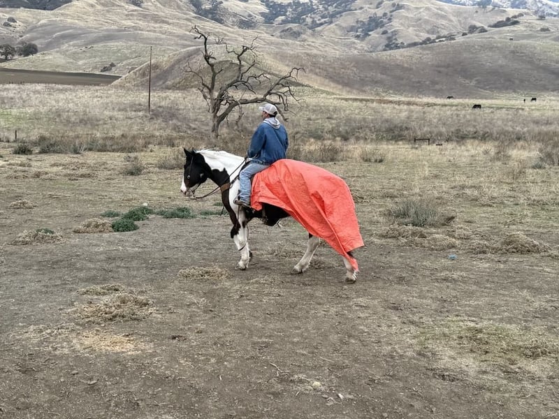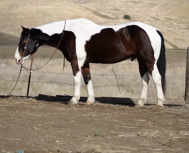 ONLINE AUCTION Place your bids at www.PlatinumEquineAuction.com Starting Bid $3500 Auction ends December 29th, 2024 Need a new saddle? Check out White Rock Saddles on our website or Facebook! Meet Bison… The gentle giant who will make your New Year unforgettable! This stunning 8-year-old tri color paint draft cross gelding is stunning with one blue eye standing at 16 hands, embodying strength and grace all wrapped up in one big puppy dog of a horse. Bison will greet you at the gate and put his nose in the halter he loves attention. Whether you’re gathering cattle or dragging calves to the fire or just enjoying a leisurely ride through picturesque state parks, he will calmly go out alone or with a groups of friends. He is great in the pasture with mares and geldings and is just as content in a stall setting. Bison is your go-to partner for any adventure. He calmly crosses flowing rivers and gracefully walks over downed trees while taking in the sights of wildlife with an air of confidence. With his impressive neck rein and sliding stop, this boy knows how to pick up leads like a pro in the arena making him perfect for riders from beginners to advanced he is a confidence builder. He’s also quite the star when it comes to parades, strutting his stuff like he owns the spotlight! But don’t let his good looks fool you; Bison has mastered obstacles too navigating bridges, car washes, and even tires with ease while looking effortlessly stylish whether dressed in English or Western tack. He has carried flags and is not bothered by tarps or balls he is just and easy going boy. He rides bareback in just a halter. You can stand on him slide off his butt and crawl all over him! Riding him feels like sinking into a plush couch; he’s as comfortable as they come! Plus, he’s easy to clip, show off at events or haul around town. He is not concerned about cars, semis or pedestrians. Bison tacks up easy stands for mounting and enjoys grooming sessions he is shod all the way around and good for the farrier. If you’ve been searching for that special equine companion who embodies both heart and versatility. Bison is waiting to meet you at Longhorn Ranch! Located in Paicines, CA contact Dina 831-537-1915. ONLINE AUCTION Place your bids at www.PlatinumEquineAuction.com Starting Bid $3500 Auction ends December 29th, 2024 Need a new saddle? Check out White Rock Saddles on our website or Facebook!