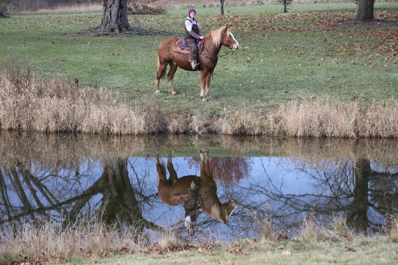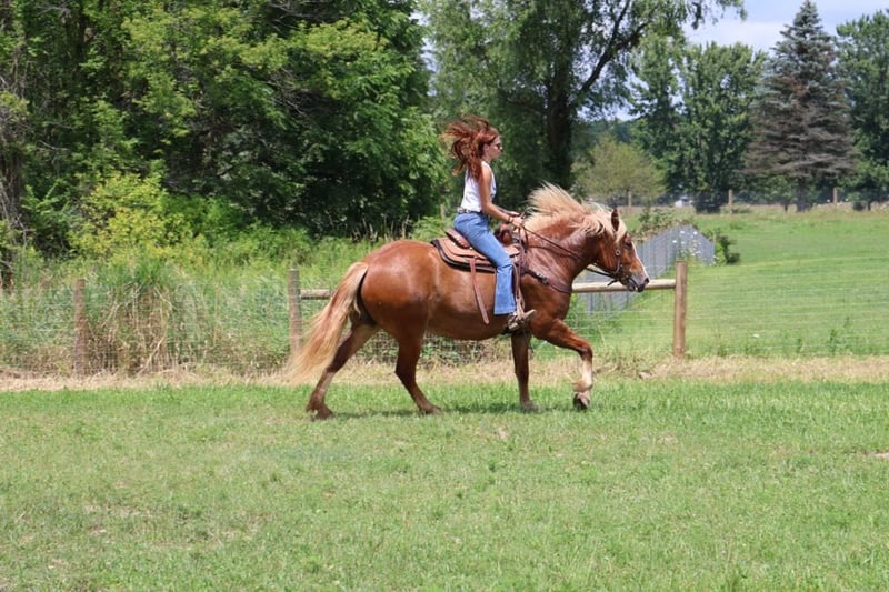 ONLINE AUCTION Place your bids at www.PlatinumEquineAuction.com Starting Bid $3500 Auction ends August 18th, 2024 Need a new saddle? Check out White Rock Saddles on our website or Facebook! Meet Cash! Here he is- big, quiet, middle age, and a gelding!! My phone rings daily for this type! Cash is the steady eddy, quiet, dependable, and safe mount that everyone is searching for. He is 16 hands & 12 years old. His mom is a haflinger and his dad is a Belgian draft. Cash is a handsome chestnut gelding with a long, thick blonde mane and tail. He is the type who is built to last. He is correct in every way; good bone structure, clean legs, proportionate body, and strong hooves. Cash is a joy to ride and is easy to get along with. He walks, trots, and canters on a loose rein and has wonderful breaks. Say “whoa” and he tucks in his hind end and comes to a complete stop. Cash has a nice steady way of going and is very agile for a horse of his size. He is generally in no rush to get anywhere. Cash takes his time and enjoys the views. Cash rides both English and western. He has done countless of trail rides and has been hauled out to all the state and to metro parks all in Michigan. This fall Cash did a few hunter paces with some of our staff members. He has seen plenty of miles on the dirt roads, open fields and deep woods. Water, wildlife, bikes don’t phase him at all. He jumps right around in true hunter fashion, slow and steady. He pops his knees up yet won’t shy from anything. He has lots of fancy buttons for the more advanced riders. He knows how to side passing, leg yield, pivoting, turn on the forehand and haunches in. He has competed under the lights in a grand stand performance in front of hundreds of people while keeping his cool. He has also completed our de-sensitization program with flying colors; flags, tarps, pool noodles, opening gaits roping- he’s seen it all. Cash has also been driven! He’s pulled out carriage in busy cities and just around the farm. We think Cash would do well as a lesson horse, family horse, trail horse, or a show horse. Cash is a horse anyone can ride, love, and enjoy! Located in Howell MI 48855. Call or text Ellesse Schwartz 248-390-6831 for more info. ONLINE AUCTION Place your bids at www.PlatinumEquineAuction.com Starting Bid $3500 Auction ends August 18th, 2024 Need a new saddle? Check out White Rock Saddles on our website or Facebook!
