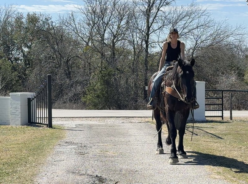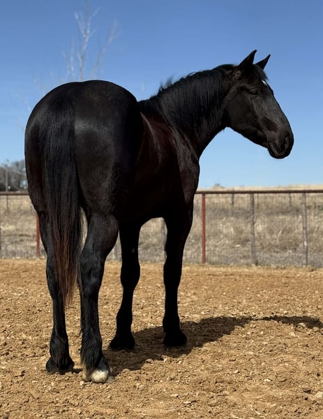 Increíblemente atlético, talentoso y versátil, potro de 3 años, cruce de Draft negro