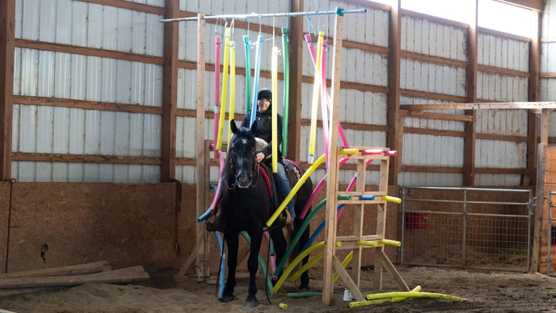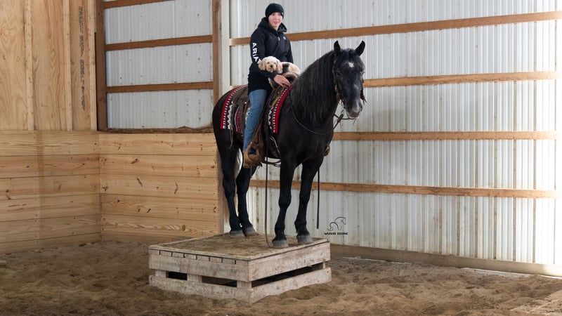 Snoopy, potro de 4 años, 1.55 m, de color gris, cruce de draft y caballo castrado