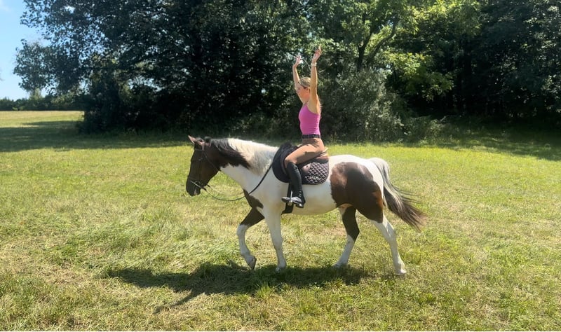 "AVAILABLE ON ONLINE HORSE AUCTION AT www DOT MagicHorseAuction DOT com BIDDING OPEN NOW thru TUESDAY | September 16TH! - BUY IT NOW AVAILABLE! *Final price will be determined on auction site* CONSIGNOR CONTACT INFO: Juli Hubik 717-875-2061 LOCATION: Gap, PA Meet Sánchez, a 4-year-old, 15.1–15.2hh Draft/Paint cross gelding, a.k.a. Mr. Adorable Tank on Four Legs. This compact cutie is built like a brick house and has the personality of your favorite golden retriever. He’s the kind of horse that makes you smile every time you see him — and he knows it. He’s got solid conformation, like “could survive the apocalypse” solid, but without being a skyscraper. He’s the perfect height for those of us who like our horses to be sturdy and substantial — but not so tall that you need a parachute to dismount. He takes up leg beautifully and rides both English and Western, because why limit yourself? In the arena, Sánchez is that magical combination of comfy and uncomplicated. He stands patiently to be mounted — block, ground, whatever — and once you’re on, he’s got a walk-trot-canter that feels like riding a couch made of clouds. His trot is easy to sit (yes, really), and his canter? So smooth you’ll forget about your to-do list and start planning your next trail snack. He’s got a shorter stride, which means tight circles are no problem — and you won’t feel like you’re driving a stretch limo. He’s responsive, but not reactive — just the right mix of “let’s go” and “chill out.” You don’t have to constantly nag him to move, but you can put a leg on without getting launched into space. He stops like a pro with a little seat and a “whoa,” and his brakes work better than most luxury cars. Sánchez is basically the Swiss Army knife of horses. Want to dabble in dressage? Go for it. Try some jumping? Sure. Hit a hunter pace? Absolutely. Or maybe you just want a best buddy for trail riding and barn gossip — he’s your guy. On the trail, he’s a total gem. Front, middle, back, solo — you name it. He’s been through creeks, rivers, woods, and wide-open fields like he’s auditioning for a nature documentary. He’s brave, steady, and probably more reliable than your GPS. He’s even taken beginner riders out for a spin and kept things cool, calm, and collected. He’s popped over tiny logs in the field like a saint, knees up, ears forward, and zero drama. This guy loves going new places — he’s basically the horse version of that friend who always has their bag packed for a weekend trip. Load him up, and he’s ready to go, ears perked and wondering if there will be snacks. Desensitization? Oh, he’s done it all. Fire? Check. Traffic? No problem. Tarps, balls, smoke bombs? Bring it on. While he’s not a total deadhead (he does have a brain), he’s not spooky — more curious than anything. If something startles him, he does a little blink, shrugs it off, and keeps on trucking. In the barn, Sánchez is a gentleman. He minds his manners, respects your space, and plays nicely with the other horses. He stands like a champ for grooming, tacking, and farrier visits. He picks up his feet without fuss and never turns into a pushy brat. At first, he might seem a little stoic — like a mysterious cowboy in a movie — but give him a minute, and suddenly he’s your best friend, rooting through your pockets for peppermints like a seasoned treat detective. We truly love this young guy and believe his future is super bright. That said, he is still young and learning, so he probably isn’t ideal for a complete beginner unless they’re working with a trainer who can help guide him on his path to world domination — er, success. We want a home for him where he’ll be appreciated, loved, and maybe occasionally spoiled with cookies. Because let’s be honest — this horse is kind of amazing.