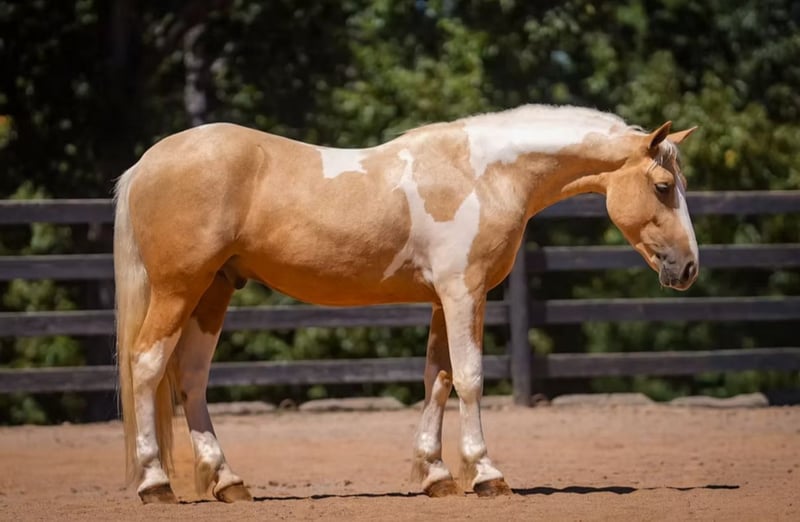⚜️𝐓𝐇𝐄 𝐅𝐀𝐋𝐋 𝐇𝐄𝐑𝐈𝐓𝐀𝐆𝐄 𝐂𝐋𝐀𝐒𝐒𝐈𝐂⚜️ Happening now thru MONDAY | NOVEMBER 3rd - Available EXCLUSIVELY on HorseBid's website! For more details and to register visit: www.Horsebid.com CONSIGNOR CONTACT: Carolina Sport Horses 704.249.8500 LOCATION: Clover SC BREED: Draft X REGISTERED: No REGISTERED NAME: Joplin COLOR: Palomino Paint HEIGHT: 14.2 AGE: 5 GENDER: Gelding Joplin is a 5 year old Quarter Horse x Halflinger standing 14.2 hands high. "Wow!" is what everyone thinks when they meet Joplin. He is a gentle, loving, showstopper of a horse. He has the education, the experience, and most importantly, the factor of safety. Climb on and go on any adventure and know you have a solid, sensible horse beneath you. The sky is the limit when you partner with Joplin. He knows all of the moves in the ring, is as sure footed as they come on the trails, and is just simply fun to ride and be around. He wants to be everyones best friend, and will be a trustworthy partner for years and years to come, no matter what adventures you want to go on. In the ring, Joplin is like no other draft cross you've seen. He has every button one could want, while still being gentle enough for the kids to take their weekly lessons on. He has the most incredible canter, with near perfect transitions. He is well on his way to performing pirouettes, knows all the lateral work, and even has a lead change. There are few horses with the range that Joplin has. He can complete a dressage test, jump around the cross country field, teach the kids lessons, and has even been used for rounding up cattle! If you can dream it up, you can do it with Joplin. We see so many different horses every year, but there are very few horses that truly can pick up any discipline and do with the ease and confidence that Joplin does. On the trails, Joplin is the number one trail master. Point him at anything, and he will go. He is brave, he is sure footed, and he is safe. There is no water too deep, hill too steep, or task too daunting. If trail blazing isn't your thing, he is equally capable and happy doing a hack around the farm with friends after a lesson, or going on a sunset stroll. The kids love to take him out into the woods after their ride and pop over the logs and coupes and play Saddle Club. On the cross country field, Joplin is brave and easy. He has the scope for any fence, and is as brave as they come. In the barn, Joplin is the most loving horse around. He would rather live in your house than the barn, and is the first to the fence to come in and get attention. He stands to be bathed, clipped, tacked, and groomed. He is used to the kids climbing all around him, and he is always polite and gentle. Joplin lives out, weather permitting, and is a good boy when stalled. He goes out in a mixed herd and gets along well with everyone. He has no vices, quirks, or funny business, and is an easy keeper that's a pleasure to have in the barn. Joplin is the type of horse that comes around once in a blue moon. There is not another horse like him, and I'm not sure we will ever be able to find anything even close. From his looks, to his personality, the way he rides, and his brain, Joplon is absolutely one of a kind. Joplin is available to be seen at our farm in Clover, SC by appointment.