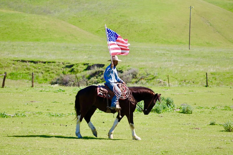Imponente caballo de raza Draft de 5 años, en blanco y negro, de la familia Ranch Horse Deluxe