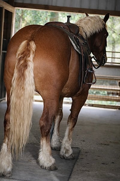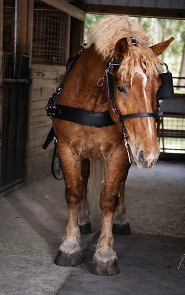 "AVAILABLE ON ONLINE HORSE AUCTION AT www DOT PlatinumEquineAuction DOT com BIDDING OPEN NOW thru SUNDAY | APRIL 19TH! *Final price will be determined on auction site* CONSIGNOR CONTACT INFO: Kyra Malone 813-601-8455 LOCATION: Land O Lakes, FL Axel Suffolk punch cross 16.1 hh gelding 5 years old. Axel is the sweetest puppy dog gelding Axel has been used as a husband's horse. He is safe and reliable. Axel drives single and double. He has done wagon trains and camping. He has great manners and loves to be around people. Bathes, loads, ties, clips. Great with all other horses. He is gentle on the ground and has great ground manners. Kids can lead him around and he is safe with them. Axel has recently done fox hunts and he absolutely loved it. Axel has a great brain and always ready to please. For more information, contact Kyra at 813-601-8455.