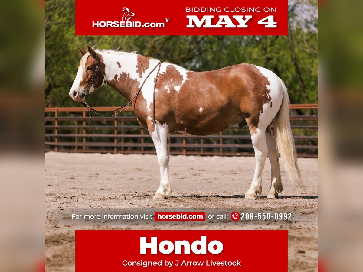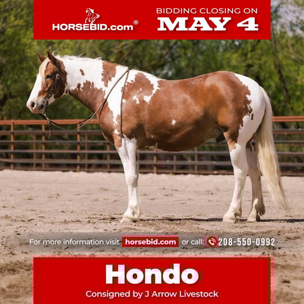 ▪️▫️◾️𝐭𝐡𝐞 𝑴𝒂𝒚 𝐒𝐞𝐥𝐞𝐜𝐭◾️▫️▪️ Happening now thru MONDAY | MAY 4th - Available EXCLUSIVELY on HorseBid's website! For more details and to register visit: www.Horsebid.com CONSIGNOR CONTACT: J Arrow Livestock 208-550-0992 LOCATION: New Plymouth, ID BREED: Draft cross REGISTERED: No REGISTERED NAME: Hondo COLOR: Sorrel and white HEIGHT: 16.2 AGE: 5 GENDER: Gelding Hondo is just flat beautiful! He’s a perfectly balanced gelding pretty headed nice neck big hipped. He’s extremely good moving for a big horse and looks beautiful under English or western tack. He floats across the ground and has all the ability to do anything you point him at. Hondo is extremely gentle and loves people, he will come to you out in the pasture or the stall hunting your affection. He’s been around kids of all ages and every farm animal you can think of as well. We have used him on the ranch to move cattle from pastures and have roped on him as well. Hondo will cross anything you point him at he loves water and will go right through rivers or creeks. He’s a great trail riding horse for anyone to have a relaxing ride. He’s broke to a step stool or the fence to make it easy to mount or dismount. In the arena he is so fun he’s got amazing gates! His jog trot is to die for with his natural low headset and level top line you can sit it for hours. Hondo loose beautifully he will lope collected up or on a loose rein whichever you prefer. We have ridden him English and have took him over small jumps. He shows great potential to make an awesome hunt horse. This horse is super versatile and could go in so many directions he’s willing and ready to make his new owners happy. Please call fmi2085500992