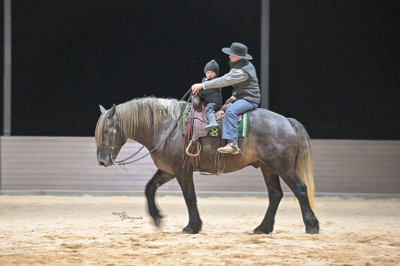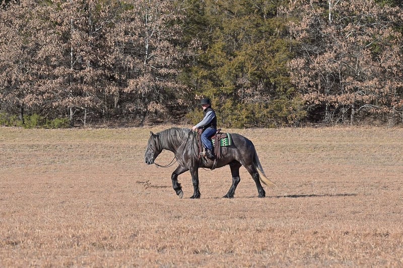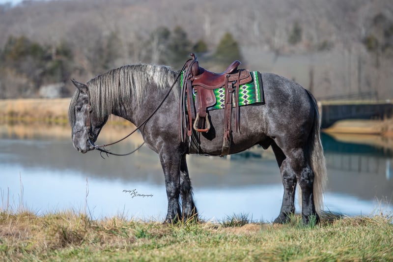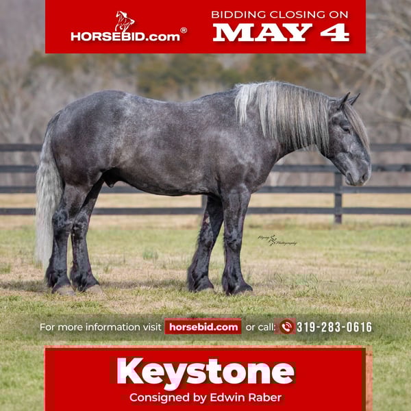 ▪️▫️◾️𝐭𝐡𝐞 𝑴𝒂𝒚 𝐒𝐞𝐥𝐞𝐜𝐭◾️▫️▪️ Happening now thru MONDAY | MAY 4th - Available EXCLUSIVELY on HorseBid's website! For more details and to register visit: www.Horsebid.com CONSIGNOR CONTACT: Edwin Raber 319-283-0616 LOCATION: Fairbank, IA BREED: Percheron x Quarter Horse (Draft Cross) REGISTERED: No COLOR: Gray HEIGHT: 16.2 AGE: 5 GENDER: Gelding Keystone is the definition of a gentle giant, and is the perfect gentleman whether his rider is big or small. He is a 5-year-old draft cross gelding that stands a solid 16.2h, weighing in at 1500 lbs, and wearing a #6 draft shoe. By a Percheron stallion and out of a Quarter Horse mare. He is honest and genuine in his ride, taking care of an inexperienced or a young rider as they stroll down the trails. Keystone is a jack of all trades; he rides Western, English, bareback, bridleless, and even drives! You can expect him to be a seasoned trail or arena mount, even with time off, he picks things up right where you left off. He is a pleasure to be around on the ground, under saddle, or under harness. Keystone will go wherever he is pointed down the trails, where he easily crosses downed timber, walks quietly through the rivers, and handles rugged terrain with ease. He is accustomed to all wildlife as well, whether he comes across a flying pheasant in Iowa, or a speedy road runner in Arkansas; Keystone has seen it all! Whether you are out on the trails or in the arena, he stands patiently at a mounting block or will even stand next to a rock or log to be mounted. He is truly a horse that an entire family can enjoy and is so versatile. He has a personality that everyone loves, as he enjoys all of the attention. He is personable with everyone and doesn't know a stranger. You will notice in his photos and video that he has a true double mane, falling thick and even on both sides of his neck! He is truly one of a kind. Keystone has put up with a lot from me as you will see in the video, always keeping a level head and the utmost patience. He stands quietly with side-by-sides doing donuts around him and even entertains attention from a 7.5ft T-Rex on the ground and under saddle. He handles new things like a seasoned pro, and it's one of our favorite things about him. Keystone picks up his leads correctly on cue, lopes beautiful circles in a field or in the arena. He does everything that is asked of him without hesitation. Even with new riders on his back, he is always aiming to please. For a crossbred gelding, there isn't much that Keystone hasn't done, or hasn't been exposed to. He is extremely well rounded and versatile, making him a great fit for so many riders and families. All of our video was taken while on vacation in Arkansas, a brand-new place to him. Though it is not in the video, we want to emphasize how well he drives and how well he handles riding through the busy streets of our small town. Keystone is traffic safe and handles a busy environment very well. He is not a stranger to trail obstacles; and enjoys all of the horseplay with the tarps, balls, and anything else the kids can think of. Keystone loads and hauls very well, he is a gentleman for the farrier and the veterinarian, bathes well, and stands quietly to be groomed and tacked up. He is used to being around farm equipment and all types of farm animals from small pets to poultry. He is easy to catch and happy whether he is stalled or turned out and gets along well with others in a pasture setting. Radiographs or a pre-purchase exam can be arranged (at buyers' expense). If you have any questions or would like to meet Keystone prior to the auction ending, please CALL Edwin at 319-283-0616.