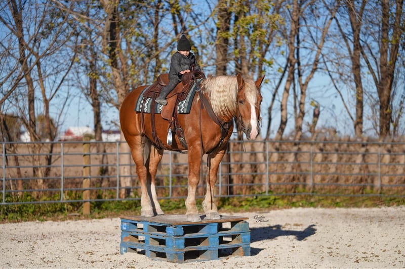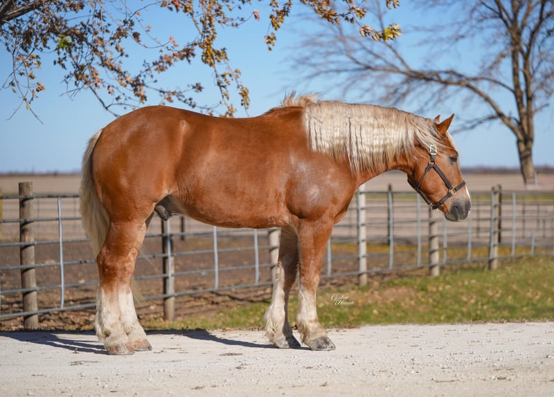 ⚜️ 𝓽𝓱𝓮 𝐇𝐨𝐫𝐬𝐞𝐦𝐚𝐧'𝐬 𝓢𝓱𝓸𝔀𝓬𝓪𝓼𝓮⚜️ Happening now thru MONDAY | DECEMBER 1st - Available EXCLUSIVELY on HorseBid's website! For more details and to register visit: www.Horsebid.com CONSIGNOR CONTACT: Platinum Star Stables 260-977-9095 LOCATION: Independence, Iowa BREED: Draft Cross REGISTERED: No REGISTERED NAME: Patrick COLOR: Palomino HEIGHT: 15.2 AGE: 5 GENDER: Gelding If you have been looking for the PERFECT addition to your stable then you have found the right horse! Patrick is a stocky built, 15.2hh, 5 year old, Draftcross, gelding with movie star good looks, muscles upon muscles and a heart of gold! What color is he? We aren't sure either, he is what some folks call a dark palomino while others call him a golden sorrel... either way he shines and sparkles in the sunlight and he is as flashy as the day is long! Patrick has completed our program with flying colors! Everything that we have asked him to do, Patrick has done with ease and training him has effortless as he is totally agreeable to do whatever that is asked of him. Patrick is trained to lay down on cue and he likes to show off his talents. He is a horse that is very laid back and a horse that will build his riders confidence levels. Patrick is safe for the whole family to ride from the little kids to the eldest granny, anyone can have an enjoyable ride on this guy. No shocker that with a horse this gentle, he is everyone's best friend and loves any type of attention, especially grooming. Patrick has a smooth trot, takes his leads and will lope nice circles. He neckreins around, has a good stop, sidepasses to open/shut gates, moves off of leg pressure and backs with ease. He rides well indoor or anywhere outdoor. Not only does he go western but he goes english and will go over jumps. He holds steady coming into the jumps and lands balanced. Patrick has been exposed to all kinds of wildlife and he has been ridden in the mountains. Patrick is great on the trails, he picks his way through rocky terrain, crosses deep water, scales slopes with ease and walks across deadfall as well. He has also been driven down the highways under harness and is traffic safe. We have ridden him through town and he is totally safe there as well. Patrick sells with no bad habits, he has never been lame and has a clean vet exam on file. Whether he is ridden by a professional, total novice, the kids or whether you want to ride around the ranch, trails, drive, do jumps or just lay down and take a nap together… Patrick can do it all and do it all RIGHT! We are totally confident in Patrick and offer a 2-week replacement 100% satisfaction guarantee. We can assist with shipping to any state. Please call Ervin at 260-977-9095 to set up a time to come see Patrick in person or to ask any questions about him. Our line is set up for calls only so NO TEXT PLEASE!!! We look forward to working with you, God Bless!