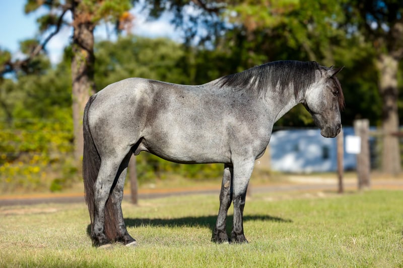 ♦️ 𝐭𝐡𝐞 𝐀𝐌𝐄𝐑𝐈𝐂𝐀𝐍 𝓕𝓪𝓵𝓵 𝓒𝓵𝓪𝓼𝓼𝓲𝓬 ♦️ Happening now thru MONDAY | OCTOBER 20th - Available EXCLUSIVELY on HorseBid's website! For more details and to register visit: www.Horsebid.com CONSIGNOR CONTACT: Flying B Equine,LLC 330-243-5233 LOCATION: Lufkin, TX BREED: Draft Cross - Percheron / Quarter Horse REGISTERED: Yes REGISTERED NAME: FBE Frio N Blue COLOR: Blue Roan HEIGHT: 16.2 AGE: 6 GENDER: Gelding FBE Frio N Blue affectionally known as "Frio" is a 2019 Draft Cross gelding registered with the IDSHR. Standing 16.2HH this boy is BIG, BLUE and BEAUTIFUL! No matter your goals, preferred discipline, or riding atmosphere, Frio has the confidence and athleticism to make your dreams a reality. He has been enjoyed by every level and age of rider and we confidently put a beginner on him! In the arena, he is an elegant mover with a canter that you can sit for hours, and ask for with a simple smooch. His smooth transitions, lead departures and willingness to work strongly support why I believe he would make a great dressage or western dressage prospect. He will pivot on his haunches, stops with ease, and will back up for days. He has been ridden extensively in the arena both under English and Western tack and has also been to a few schooling shows. You can swing a rope, throw balls at him, ride next to machinery or even move cattle on this guy. Frio is the definition of versatile. I’ve personally enjoyed many miles on the back of Frio through the National Forest, where we’ve encountered cyclist, dirt bikes and various wildlife. No matter the obstacle or terrain, Frio will go anywhere you point him without hesitation. He crosses all types of water, bridges, logs, and brush! He is surefooted and his main priority is the safety of his rider. He will stand tied for days to be loved on, groomed, and tacked. He is a complete gentleman for the farrier and the vet. He does not require any maintenance, stocks for shoeing or special feed. He is an easy boy to own, ride, enjoy and fall in love with. He has absolutely no vices! He is UTD on everything, and has a recent PPE on file. He is located with us in Lufkin, Texas and you are welcome to come meet him in person or do your own PPE. We can also help arrange shipping anywhere! Call Bailey @ (330)-243-5233 for more information.