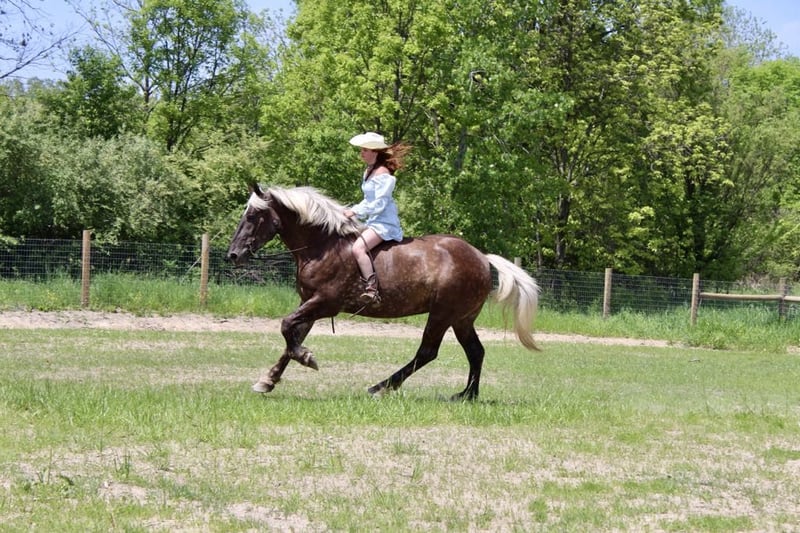 ONLINE-AUKTION Geben Sie Ihre Gebote unter www.PlatinumEquineAuction.com ab. Startgebot $3500 Die Auktion endet am 14. Juli 2024. Brauchen Sie einen neuen Sattel? Schauen Sie sich White Rock Saddles auf unserer Website oder Facebook an! Wenn ein Pferd aus einem Märchen in Ihren Stall kommen könnte, dann wäre es dieses. In natura ist sie genauso zauberhaft. Ich bin stolz, Ihnen Birdie vorstellen zu dürfen. Dieses Draftcross-Mädchen ist 16,3 groß und 4 Jahre alt. Sie hat eine wunderschöne blonde Mähne und einen wallenden Schweif, die ihr silberfarbenes, gesprenkeltes Fell perfekt ergänzen. Birdie hat einen hervorragenden Körperbau. Sie ist gut bemuskelt, hat einen tollen Knochenbau und feste Hufe. Sie ist so umwerfend, dass man den ganzen Tag vor ihr sitzen und sie anschauen könnte! Birdie hat die enthusiastischste Persönlichkeit, die man bei einem Pferd finden kann. Sie ist IMMER bereit zu gefallen. Sie hat eine Menge Freiheitsdressur. Birdie weiß, wie man sitzt, sich hinlegt und ja und nein sagt. Unter dem Sattel lässt sich dieses Mädchen mühelos reiten. Sie hat einen ruhigen Schritt, einen schönen Trab und den besten Galopp, auf dem man sitzen kann. Sie verfügt über erstaunliche Übergänge, sowohl bergauf als auch bergab, und ihre Bremsen sind gut. Sie trägt sich mit viel Kadenz und Klasse. Sie wurde sowohl im Gelände als auch auf der Straße geritten und geht überall hin, wo Sie es wünschen, ohne dumme Sprüche. Viel Glück dabei, sie zu erschrecken! Sie bleibt in fast jeder Situation ganz cool. Zusätzlich zu ihrer Freiheitsdressur hat Birdie einige sehr coole Knöpfe. Sie kann aus dem Stand angaloppieren, mit dem Bein nachgeben, an der Seite vorbeigehen, rückwärts reiten, sich auf den Sitz setzen und den Beindruck aufheben. Birdie hat mit Dressurbewegungen der Stufe 1 herumgespielt, wie Schulterherein, Schulterherein, Dehnung und Versammlung in all ihren Gängen. Birdie wurde nur sehr leicht über Zäune geritten. Sie hat bereits mehrere Jagdprüfungen absolviert und war viele Stunden auf der Weide unterwegs! Dies ist das schönste Mädchen der Stadt. Bitte rufen Sie Ellesse Schwartz unter 248-390-6831 an, um weitere Informationen zu erhalten. Birdie wohnt in Howell, MI 48855. ONLINE-AUKTION Geben Sie Ihre Gebote unter www.PlatinumEquineAuction.com ab. Anfangsgebot $3500 Die Auktion endet am 14. Juli 2024. Brauchen Sie einen neuen Sattel? Schauen Sie sich White Rock Saddles auf unserer Website oder Facebook an!