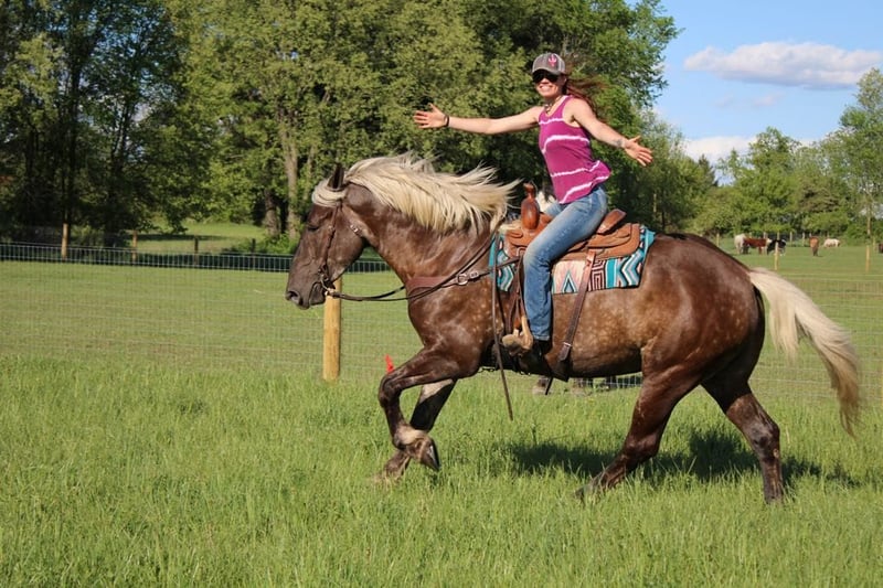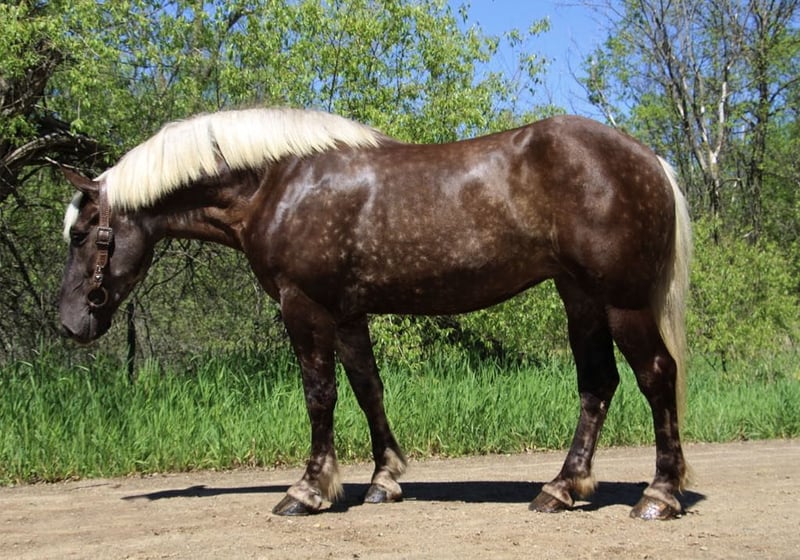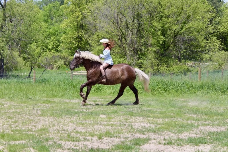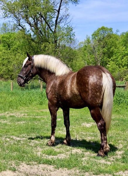 ONLINE AUCTION Place your bids at www.PlatinumEquineAuction.com Starting Bid $3500 Auction ends July 14th, 2024 Need a new saddle? Check out White Rock Saddles on our website or Facebook! If a horse could walk out of a fairy tale into your barn this would be her. She is every bit as magical in person. I’m proud to introduce you to Birdie. This draftcross girl stands 16.3 at 4 years old. She has a beautiful blonde mane and flowing tail which compliment her silver dappled coat. Birdie has excellent conformation. She is well muscled with great bone structure and solid hooves. She is so stunning you could sit and look at her all day! Birdie has the most enthusiastic personality you will find in a horse. She is ALWAYS willing to please. She has a lot of liberty training. Birdie knows how to sit, lay down, and say yes and no. Under-saddle this girl is just about effortless to ride. She has quiet walk, a beautiful trot and the best canter you will sit on. She comes equipped with amazing transitions, both upward and downward, and her brakes are good. She carries herself with a great deal of cadence and class. She has been trail and road ridden, and she will go any where you ask with no silly business. Good luck spooking her! She’s as cool as they come in just about any situation. In addition to her liberty work, Birdie has some very cool buttons. She can canter from a halt, leg yield, side pass, back up, move on and off of seat and leg pressure. Birdie has been playing around with 1st level dressage movements, such as shoulder in, haunches in, extension and collection in all of her gaits. Birdie has been very lightly started over fences. She has been on several hunter paces and has spent many hours out on the trails! This is the most beautiful girl in town. Please call or text Ellesse Schwartz at 248-390-6831 for more information. Birdie lives in Howell, MI 48855. ONLINE AUCTION Place your bids at www.PlatinumEquineAuction.com Starting Bid $3500 Auction ends July 14th, 2024 Need a new saddle? Check out White Rock Saddles on our website or Facebook!