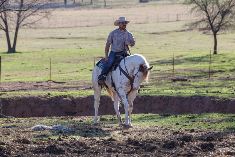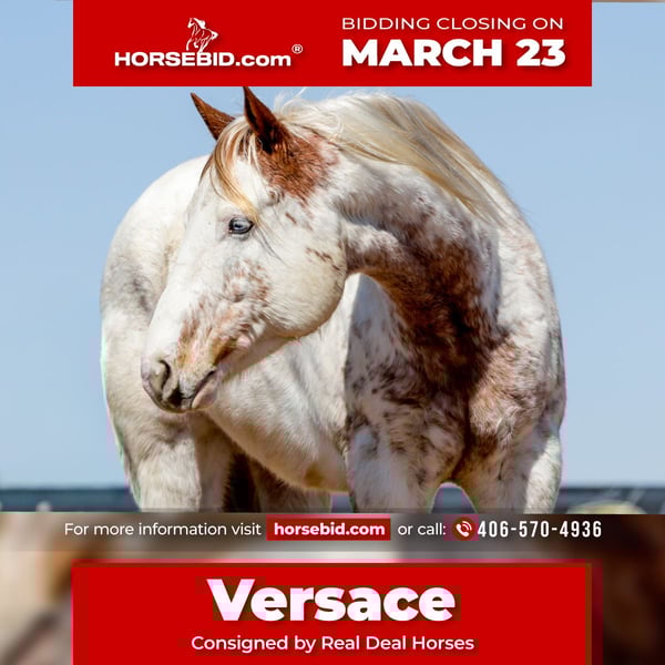 ⚜️𝓽𝓱𝓮 𝐆𝐎𝐋𝐃 𝓢𝓮𝓵𝓮𝓬𝓽⚜️ Happening now thru MONDAY | MARCH 23rd - Available EXCLUSIVELY on HorseBid's website! For more details and to register visit: www.Horsebid.com CONSIGNOR CONTACT: Real Deal Horses 406-570-4936 LOCATION: Ripley, OK BREED: Draft X REGISTERED: No COLOR: Sorrel HEIGHT: 15.3 AGE: 6 GENDER: Gelding Versace is a stunning 6 year old draft cross paint gelding with the kind of presence that turns heads wherever he goes. With his striking color, big kind eye, and balanced build, he is the perfect combination of beauty, brains, and versatility. Versace carries himself with natural elegance and confidence, making him equally impressive in the arena, out on the trail, or simply standing in the barn aisle soaking up attention. Versace is quiet, kind, and exceptionally well mannered. He has the type of disposition that makes him enjoyable for riders of many experience levels. He is safe, sane, and steady, traveling out willingly and handling new situations with a calm and level headed attitude. Whether you pull him out every day or give him time off, he maintains the same reliable and forgiving nature. Under saddle, Versace rides both English and Western and moves with balance, fluidity, and natural cadence. He is soft in the bridle, responsive to seat and leg, and carries himself with a comfortable, collected way of going. He has clean transitions, a smooth canter, and the athletic ability to continue excelling in a variety of directions. Versace shows great promise as a versatile performance partner, whether you’re interested in arena work, ranch riding, dressage, or simply enjoying a well trained and stylish horse to ride. Out on the trail, Versace is confident, sure footed, and relaxed. He is comfortable in new environments, crosses water, travels over varied terrain, and handles traffic and commotion with ease. He’s the kind of horse you can saddle up and enjoy wherever the day takes you. In the barn, Versace is an absolute gentleman. He stands quietly for grooming, saddling, and the farrier, and is respectful and easy to handle in every setting. He enjoys attention, meets you at the gate, and has the kind personality that quickly makes him a favorite around the barn. With his eye catching paint markings, kind personality, and well-rounded training, Versace is the kind of gelding that checks all the boxes. A horse you can be proud to own whether you’re in the arena, on the ranch, or out enjoying the trail. Call Trevor at 406-570-4936 to schedule a time to come ride him or arrange a PPE. Nationwide transportation can be arranged.