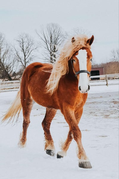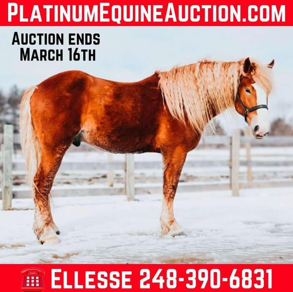 ONLINE AUCTION Place your bids at www.PlatinumEquineAuction.com Starting Bid $3500 Auction ends March 16th, 2025 Need a new saddle? Check out White Rock Saddles on our website or Facebook! Blackstone’s Curley, or Curley as we call him around the farm is the kind of horse that turns heads wherever he goes. This stunning boy is 6-years old, and stands 16.1hh! He is Chesthnut in color. He is a Belgian Gypsy Vanner cross gelding who a remarkable sight. He shines like a copper penny in the sun and has a gorgeous curley blonde mane and tail. Curley is a powerhouse of strength, versatility, and athleticism. For a horse of his size, Curley moves with incredible grace and fluidity, making him not only a reliable mount but also an athlete in his own right. Whether you are riding Western, English, over fences or bareback, Curley delivers an exceptional experience, seamlessly transitioning between disciplines with ease. What truly makes Curley stand out is his “been there, done that” attitude. He is the definition of a bombproof horse—absolutely safe in any environment. Curley has been ridden on state roads, in the woods, open fields, and has even gone on a shopping trip to our local farm store! His beautiful chestnut color blonde mane and tail and flowing feathers capture everyone’s attention! One glance into his big brown eyes will steal your heart. Out on the trails, Curley’s calm, and steady nature shines. Water crossings, tarps, bridges and other common obstacles do not phase him in the slightest. His even temperament makes him an ideal horse for beginners who need a forgiving partner, while his experience and smooth gaits make him just as enjoyable for advanced riders. Curley is the rare horse that adapts to his rider’s needs, making him a perfect fit for anyone from novice to seasoned equestrians, from small kids to savvy teens and timid adults he will take care of you! And speaking of smoothness, Curley’s three gaits are simply unbeatable. His walk, trot, and canter are incredibly fluid and comfortable, making him perfect for all-day rides without leaving you sore. Whether you are working in the arena or exploring the trails, Curley’s athleticism and stamina ensure he will keep going strong, mile after mile. In short, Curley is the full package: strikingly beautiful, strong, athletic, and most importantly, safe. If you are looking for a versatile horse that excels in riding in a variety of disciplines. Curley is the perfect partner. He is ready to take on anything, whether you are a beginner looking for safety or an experienced rider seeking a smooth, dependable horse for long adventures. Curley lives in Howell, MI 48855. Please call or text Ellesse Schwartz at 248-390-6831 for more information. ONLINE AUCTION Place your bids at www.PlatinumEquineAuction.com Starting Bid $3500 Auction ends March 16th, 2025 Need a new saddle? Check out White Rock Saddles on our website or Facebook!