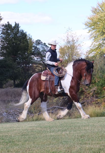 🎄𝐓𝐇𝐄 𝑯𝒐𝒍𝒊𝒅𝒂𝒚 𝐂𝐋𝐀𝐒𝐒𝐈𝐂🎄 Happening now thru MONDAY | DECEMBER 15th - Available EXCLUSIVELY on HorseBid's website! For more details and to register visit: www.Horsebid.com CONSIGNOR CONTACT: Blackstone Stables 248-390-6831 LOCATION: Howell MI BREED: Spotted Draft REGISTERED: No REGISTERED NAME: Charles COLOR: Tri Color Paint HEIGHT: 17 AGE: 6 GENDER: Gelding Introducing Blackstones Charles. This 6 year old 17hh spotted draft gelding has it all. From his captivating personality to his stunning conformation and painted color. Charles lacks nothing. Charles is the type of horse who wants to be your best friend. He plays well with all the others outside and will catch you when you walk to the pasture. Charles is extremely well broke. He walk, trots, canters and stops on a dime. His transitions are flawless both upward and down. Charles steers off seat and leg so well you don’t even need a bridle. He will gladly take a bit, snaffle or shank he’s not fussy or just pull the bridle right off and he steers with all leg ques. He builds you up every ride and makes you want to get on. Charles has loads of experience out on the trails from the mountains of MO to the open fields of MI he’s seen it. Water, deep woods, roads, wildlife no problem. Charles has been ridden in groups of 40 horses. He will take any place you ask in the group and is not one to get worked up. He’s also been out alone. He’s been driven single and double. He has worked in busy city's, in traffic and crowds of people. He stands to harness. He stands at stop signs and he will stand for passengers to get on and off the carriage. He has a great amount of training in the arena as well. He will easily steep into the lope, and can canter small circles on both leads. Charles is very balanced and light on his feet. He’s completed our desensitizing program. Pool noodles, tarps and bridges are all no problem for him. He is a very brave horse. Charles is the horse to teach you the ropes, the one you can depend on and he’s loaded with personality. He is sure to win you over with one glance into his big soft eyes! Charles lives in Howell, MI. Please call or text Ellesse Schwartz at 248-390-6831