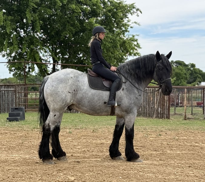 ⚜️𝐭𝐡𝐞 𝓔𝓵𝓲𝓽𝓮 𝐒𝐩𝐫𝐢𝐧𝐠 𝐂𝐥𝐚𝐬𝐬𝐢𝐜⚜️ Happening now thru MONDAY | APRIL 20th - Available EXCLUSIVELY on HorseBid's website! For more details and to register visit: www.Horsebid.com CONSIGNOR CONTACT: Holland Horse Company 559-978-6320 LOCATION: Weatherford, TX BREED: Draft Cross REGISTERED: No REGISTERED NAME: Tuxedo COLOR: Blue Roan HEIGHT: 17 AGE: 7 GENDER: Gelding Tuxedo is a stunning 7-year-old gelding standing 17 hands tall and weighing 1,740 lbs. He is the perfect combination of size, muscle, and build, paired with an incredibly smooth and enjoyable ride. Gentle, safe, and dependable, Tuxedo is the kind of horse that makes every ride relaxing and fun. He is exceptionally versatile—riding English, Western, bareback, and driving both single and double with ease. Tuxedo has been trail ridden extensively, ridden down roads and through town, and used to gather cattle. He is level-headed, confident, and as simple as they come—just saddle up and go. He rides on a loose rein, trots off with a click, lopes with a kiss, and stops on “whoa.” We’ve also started Tuxedo over fences, and he’s proven to be brave, willing, and consistent. He has never refused a jump and genuinely seems to enjoy it. In the arena, Tuxedo offers soft, beautiful circles and smooth transitions. Outside, he will go absolutely anywhere—through water, over obstacles, and across any terrain you point him at. He’s happy to go out alone or in a group and always behaves like a true gentleman. Tuxedo has zero buck or nonsense. He has excellent ground manners—stands tied, loads and hauls well, is good for the farrier, and respects personal space. He’s friendly and personable, always the first to meet you at the gate, and has a willing, eager attitude every time you ride. He is sound, straight, and clean-legged with strong, healthy feet. Tuxedo is up to date on all care and does well both stalled or turned out with others. This is a truly exceptional gelding that you have to see and ride to fully appreciate. For more information, contact Chanel at Holland Horse Company: 559-978-6320 (call or text). Hauling options available.