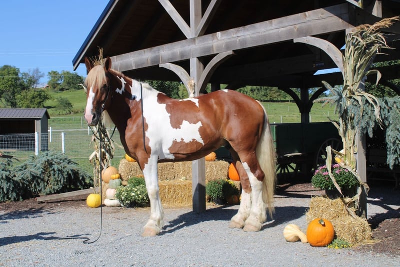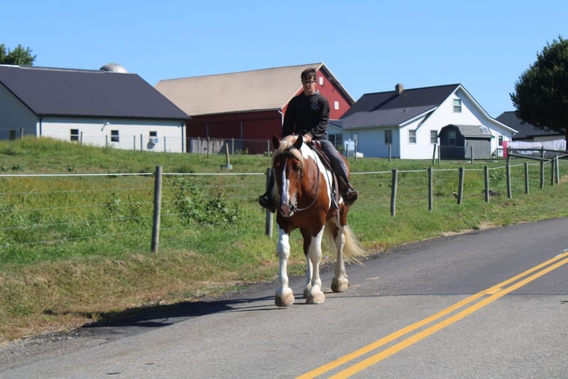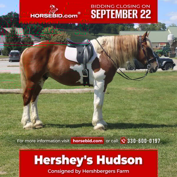 🍁𝒕𝒉𝒆 𝐅𝐀𝐋𝐋 𝑺𝒑𝒆𝒄𝒕𝒂𝒄𝒖𝒍𝒂𝒓🍁 Happening now thru MONDAY | SEPTEMBER 22nd - Available EXCLUSIVELY on HorseBid's website! For more details and to register visit: www.Horsebid.com CONSIGNOR CONTACT: Hershbergers Farm 330-600-0197 LOCATION: Millersburg, OH BREED: Spotted Draft REGISTERED: No COLOR: Red and White HEIGHT: 17.3 AGE: 7 GENDER: Gelding Hershey's Hudson is a fancy Spotted Draft gelding! Hudson is that hard to find color and size so be sure to check him out!! Hudson has been on lots of trail rides and loves to go through water. He has also been out on the busy highway and doesn't mind the traffic. He has been ridden English and Western has a nice collected lope for a big Draft. He stands nice to mount and tack up. Hudson has absolutely no buck in him but might be just a little too forward for a complete beginner. But if you have any knowledge with horses you will love to ride him. Here is a beautiful Spotted Draft!! To learn more about Hudson call or text John @ 330-600-0197.