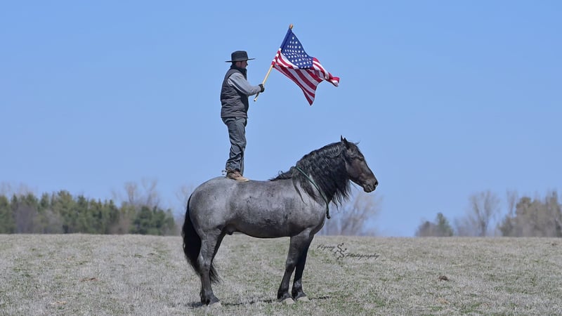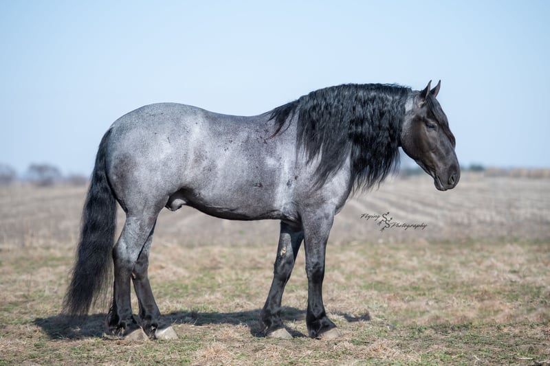 ONLINE AUCTION Place your bids at www.PlatinumEquineAuction.com Starting Bid $3500 Auction ends June 22nd, 2025 Need a new saddle? Check out White Rock Saddles on our website or Facebook! Every once in a blue moon, you come across a horse that stands above all the rest. I’m proud to offer you the once in a lifetime opportunity of owning one of the best horses I’ve ever had the privilege to own and train, Blue Moon. Blue Moon, or Blue as we often call him, is a 6 year old blue roan draft gelding that stands 16.1 hands. You will search many years before you will come across a horse who is as versatile as Blue is. He rides english, western, bareback, bridleless, liberty, and drives. Many say that their horse is a “once in a lifetime” horse, but Blue is the real deal. He is a standout, exemplary individual. Blue is broke enough for any level rider, as well as riders of any age. He has training that advanced riders will love, yet he is honest enough to take care of beginner riders. Blue is the literal go to horse in my barn for every person in my family. Everyone enjoys riding him and loves his disposition. Blue has been rode by all ages of riders, and has performed remarkably well with each individual. We are not afraid to turn the kids loose with him! My 4 year old nephew can confidently lead Blue around with his little sister in the saddle, and can ride Blue by himself without problem. My older nieces (8-12 years old) have loved taking him out on the trails and have gained so much experience in the saddle with him. I have owned Blue for one year, and have genuinely enjoyed the time I have spent training him. Blue is as gentle as he is versatile. He will excel in any direction he is taken. Blue is comfortable with the kids playing and dogs rough housing around him. He is used to all types of noises and machinery, from lawn mowers to semis, Blue has seen it all. He has been used around all types of farm equipment as well. He is happy to be hitched double or single to a carriage, and is a huge help when training other horses to drive. Blue is comfortable with a tarp, crosses logs and bridges, isn’t bothered by the crack of a bull whip, and entertains all of the shenanigans that we get into when playing with the little kids. Even after extended time off, you can bring him out of the stall or pasture, saddle him up and ride off without any problems. Blue stalls well, gets along well with other horses in the pasture, is easy to catch, and is an all around pleasure to spend time with. He is used to small pets, wildlife, as well as other small and large livestock. He will stand to be groomed and tacked with or without cross ties. He also side passes to the fence or mounting block to be mounted. For his size, he is very athletic and carries himself exceptionally. He is great in the arena, on the trail, in town amongst traffic, and anywhere else you could think of taking him. Blue correctly picks up his leads on cue, pivots, would side pass across a football field, has a nice extended trot, and lopes gorgeous circles. Blue is the horse I would trust anyone with, he is absolutely safe. Whether you want to trail ride through the rocky mountains, perform in the english show pen, or hitch him to a carriage in New York City, Blue is fully capable of doing it all. This gelding has a habit of exceeding all of your expectations, and could be considered the 8th Wonder of the World! There are few horses who you can truthfully turn loose with anyone, even fewer who can perform in so many disciplines, excelling in each. It seems like no matter how many great things are said, we barely scrape the surface of describing Blue. The way he looks is only the cherry on top! Blue is the definition of majestic with his eye-catching roan color, big round hip, kind eye, and overall balanced conformation. As if all of that is not enough, he has a mane and tail that Rapunzel would be jealous of. There are an endless amount of things to say about his training, his good nature, and how much I think of him. Blue is great for the veterinarian and farrier. He wears a #5 shoe on the fronts and a #4 shoe on the rears, and has good feet. Blue has a pre-purchase exam on file. If interested potential buyers would like to have radiographs, I am happy to assist in that. He is current on coggins. Blue is eligible to be registered in the IDSHR. If the buyer would like to have him registered, I would be glad to cover that expense and assist in registering him. I want Blue to have an amazing home, where he and his new owner work well together. To insure this, Blue will sell with a 30 day 100% satisfaction guarantee. I am confident that you will love Blue Moon as much as we have the past year. We are located in Fairbank, IA. If you have any questions, or would like to meet Blue prior to the auction ending, please call Edwin Raber 319-283-0616. I could write a book about this amazing gelding, so I urge you to call with any inquiries. I will be happy to talk with you more about my best bud, Blue Moon. ONLINE AUCTION Place your bids at www.PlatinumEquineAuction.com Starting Bid $3500 Auction ends June 22nd, 2025 Need a new saddle? Check out White Rock Saddles on our website or Facebook!
