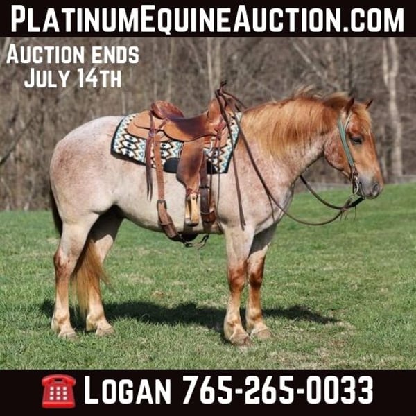ONLINE AUCTION Place your bids at www.PlatinumEquineAuction.com Starting Bid $3500 Auction ends July 14th, 2024 Need a new saddle? Check out White Rock Saddles on our website or Facebook! Here is one that checks the boxes… well built, well broke, lots of color and friendly… Asher is a stout built Red Roan gelding standing around 15hh, he is 6 years old and is one the most kind and friendliest horses that you will find! Asher has done some of the natural horsemanship training and he also knows some tricks, he will bow, lay down and set on his rump. Asher has been ridden down the highways, we have had him in town and he is very traffic safe. Asher is great on trails and he will cross creeks, ditches, logs and navigate rough rocky areas. He has a smooth jog, a VERY VERY nice easy to set lope, a good stop, spins a circle both ways and backs with ease! He has been exposed to all kinds of wildlife such as deer or turkey or other animals like cows or dogs and will go anywhere that he is asked too. He has been rode many miles in the mountains of Eastern Kentucky and encountered every obstacle possible on the trail. He will go up or down even the steepest slopes, across deep creeks, over downed trees, and over all types of rough terrain while still being sure footed. Located in Level Green, KY. Feel free to call Moore Trained Horses Logan 765-265-0033 with any questions. ONLINE AUCTION Place your bids at www.PlatinumEquineAuction.com Starting Bid $3500 Auction ends July 14th, 2024 Need a new saddle? Check out White Rock Saddles on our website or Facebook!