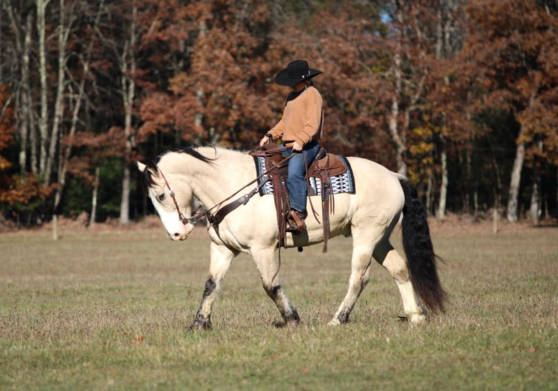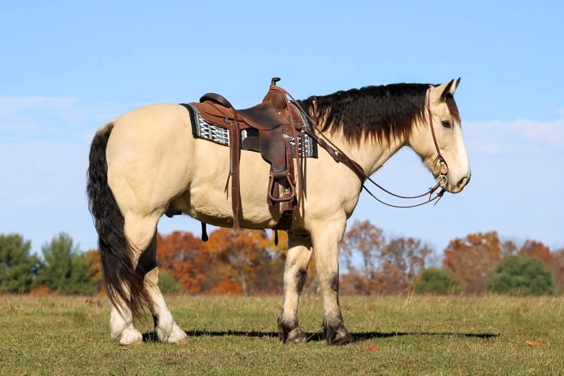 🎲𝓽𝓱𝓮 𝐑𝐈𝐃𝐄𝐑'𝐒 𝓒𝓱𝓸𝓲𝓬𝓮🎲 Happening now thru MONDAY | NOVEMBER 17th - Available EXCLUSIVELY on HorseBid's website! For more details and to register visit: www.Horsebid.com CONSIGNOR CONTACT: Wagner Horse Farm 814-564-2117 LOCATION: Clarion, Pa BREED: Draft Cross REGISTERED: No COLOR: Buckskin HEIGHT: 15.2 AGE: 7 GENDER: Gelding Meet Ike !! Ike is a 7 Year Old Super Cool , One of a Kind Buckskin Draft Cross Gelding! Wow Check Him Out!! They Dont Come Any Prettier Than Ike! Not only is Ike super pretty but he is also super good broke to ride! He will one hand neck rein, side pass, open shut gates, nice head set and lope right off. He has performed all aspects of work on the ranch and is a very seasoned when it comes to being a ranch horse and working cattle. From checking fences to roping and doctoring cattle and dragging calves to the branding fire. I have trail ridden Ike all over and he is a great trail horse. Watch Ike cross the big creek on a 40 degree morning in the deep water. He is as seasoned and broke as you will find a horse on the trail, ranch or outside in the big wide open. Ike also rides very nicely in the arena and could even be a good English riding horse prospect. The sky is the limit really for Ike he could go in any direction. When i first got Ike he was a little unsure about handling his hind feet and ears but he has gotten a lot better with all that. Ike originally worked on a large cattle operation and that job made him very seasoned and dependable on the trail and ranch. He is one of the brokest draft crosses i have ever had the privilege to ride or own. Whoever buys him is getting a once in a life time type of horse. Dont miss out on this super nice buckskin draft cross gelding. We can help arrange shipping anywhere in the United States. Call or Text Glory at 814-564-2117 Thank You and God Bless