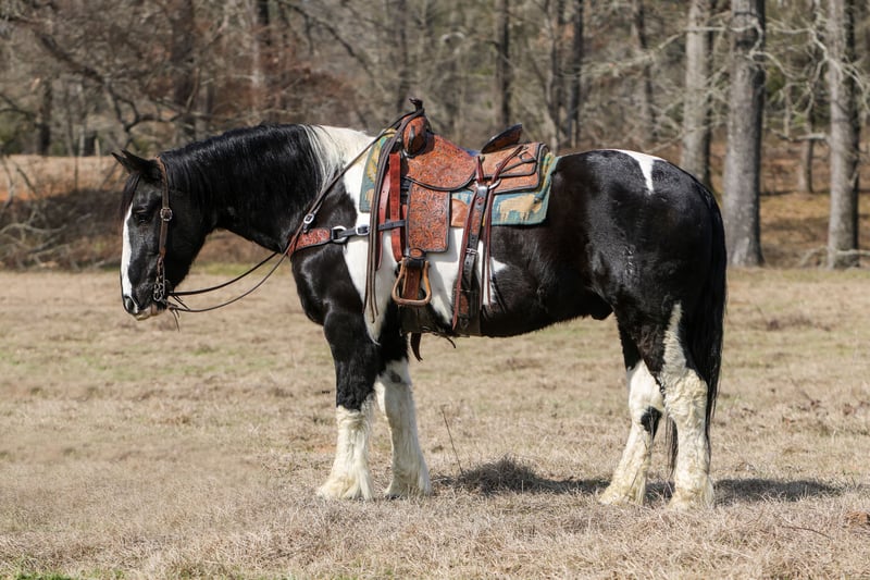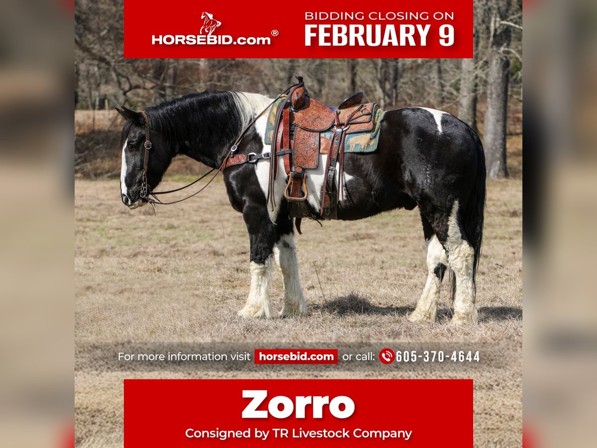 ❤️🔥𝑩𝒆 𝑴𝒊𝒏𝒆 𝐒𝐄𝐋𝐄𝐂𝐓❤️🔥 Happening now thru MONDAY | FEBRUARY 9th - Available EXCLUSIVELY on HorseBid's website! For more details and to register visit: www.Horsebid.com CONSIGNOR CONTACT: TR Livestock Company 605-370-4644 LOCATION: Rusk, TX BREED: Draft cross REGISTERED: No REGISTERED NAME: Zorro COLOR: Paint HEIGHT: 16 AGE: 8 GENDER: Gelding Zorro is a 8 year old paint draft cross (1/2 Percheron — 1/2 QH) gelding standing 16 hands tall. If you’re looking for a talented and steady crossbred, that is smart and always aims to please here he is! Zorro has a nice lope in the arena, he has smooth transitions and has a lot of ability inside and out! Zorro is great on the trails, goes through water, different terrain and over obstacles. He has been used around cattle for being ranch work such as gathering, penning and even sorting! He will ride out alone or in a group and even has been rode in town! He stands tied, loads, bathes. He’s easy going and an easy keeper! If you’re looking for gentle as well as athletic ability in a draft cross that is absolutely easy to get along with here he is! Call or text TR Livestock 605-370-4644 (Rachel) for more info! Located in Rusk TX, nationwide shipping available!