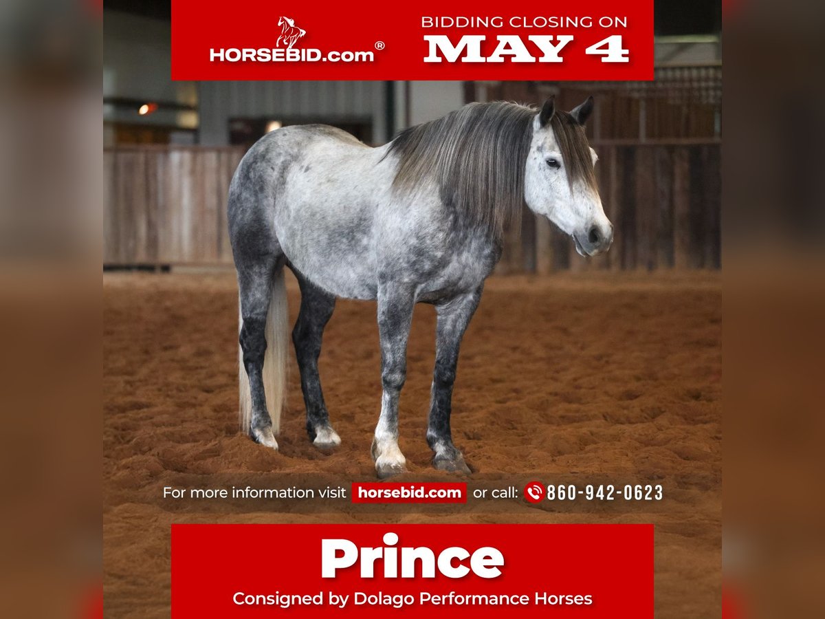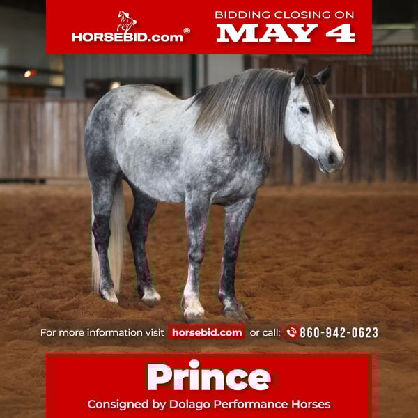 ▪️▫️◾️𝐭𝐡𝐞 𝑴𝒂𝒚 𝐒𝐞𝐥𝐞𝐜𝐭◾️▫️▪️ Happening now thru MONDAY | MAY 4th - Available EXCLUSIVELY on HorseBid's website! For more details and to register visit: www.Horsebid.com CONSIGNOR CONTACT: Dolago Performance Horses 860-942-0623 LOCATION: Ripley, OK BREED: Cross bred REGISTERED: No COLOR: Grey HEIGHT: 14.3 AGE: 8 GENDER: Gelding Prince is a one of a kind gelding… You can’t beat this horses looks or ride. He is a 8 year old dappled grey grade gelding standing at 14.3 hands tall and weighing 1050 pounds. Prince may be on the shorter side but he sure is thick. He is built with great confirmation packing a thick neck, big hip, nice top line, and thick solid clean legs. Now let’s talk about those hair goals! He has a gorgeous long thick tail, with a forelock to die for followed by a long thick mane. He is dappled nearly all over and they only get better in the summer! His favorite company are his people if he could follow you everywhere all day he would! He is always wanting to be loved on and the main focus of attention. He is truly the package deal horse with looks that will leave you staring and a ride that’s unbeatable! He has the background of being a kids ranch horse for most of his life with a great start under his belt. Don’t let that fool you when needed he can sure hustle. He is a one hand broke broke gelding your kids, aunts, uncles, the whole family can get on him and spin him around! He has a great solid stop and an even better turn around. You can put your kids on him to go sort or doctor cows for the whole day and never worry. He has been used for anything and everything multiple times. You can sort cows, doctor your wheat cattle, swing a rope off of him, trail ride all day and night, show his buttons off in the arena, jump him around english, ride him through town to get your arronds done, carry your family members around when they visit, take him skiing, practically anything you wish! We know he can do it all because we’ve done it all with him! He is a horse that you never have to worry about… he’s an easy keeper, easy to catch, and good with other horses. Leave him sitting for months, go and saddle him up and lope him off with not a worry in the world! This is a horse you can show off no matter where you take him, I guarantee people will ask about him!