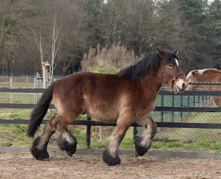 Eddie in de Hoeven is een stoere, lieve en aansprekende hengst van bijna 2jaar. Zijn stokmaat is rond de 1.63m en zal zeker nog groeien. Hij beschikt over sterk, correct en droog beenwerk en beweegt ruim en krachtig. Qua karakter is hij uitzonderlijk dapper en nuchter: nergens van onder de indruk, leergierig en altijd werkwillig. Hij is zeer mensgericht en komt vaak in de hand. Zijn instelling en bouw maken hem niet alleen interessant voor de fokkerij, maar ook zeer geschikt als toekomstig recreatie- of men paard. Moeder: Colette van Vrilkhoven Vader: Bart van Wienenhof Voor Eddie zoeken wij een ambitieus en liefdevol thuis waar hij goed tot zijn recht komt. Serieus interesse? Neem gerust contact op voor meer informatie.