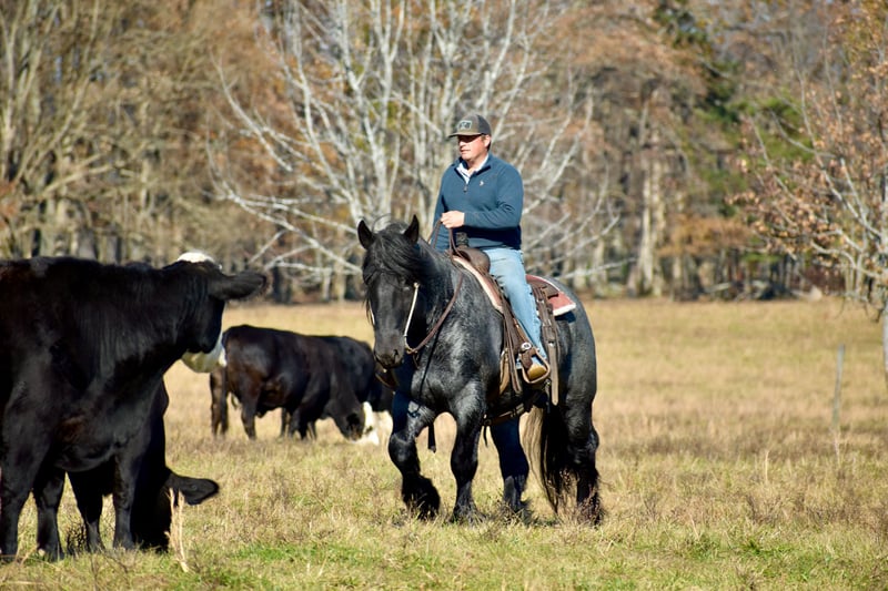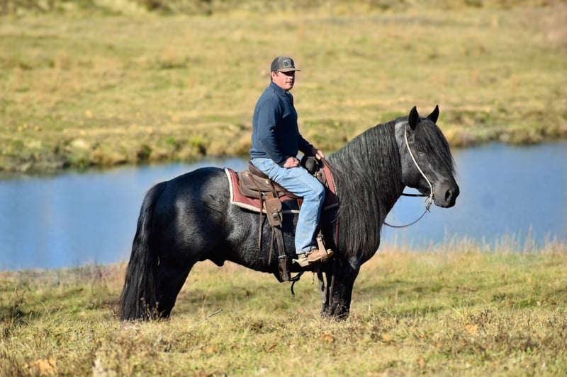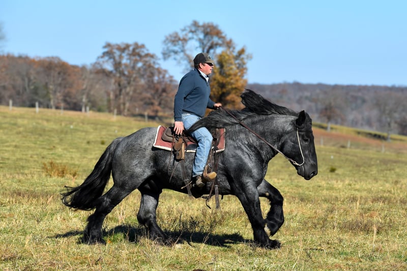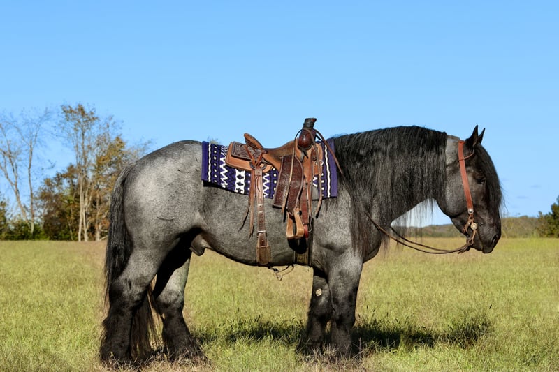 ⚜️ 𝓽𝓱𝓮 𝐇𝐨𝐫𝐬𝐞𝐦𝐚𝐧'𝐬 𝓢𝓱𝓸𝔀𝓬𝓪𝓼𝓮⚜️ Happening now thru MONDAY | DECEMBER 1st - Available EXCLUSIVELY on HorseBid's website! For more details and to register visit: www.Horsebid.com CONSIGNOR CONTACT: Lucky 13 Equine 765-698-4655 LOCATION: Mount Vernon, KY BREED: Barbant Cross REGISTERED: Yes REGISTERED NAME: Cache Creek Sue's Prince COLOR: Blue Roan HEIGHT: 16.1 AGE: 4 GENDER: Stallion Cache Creek Sue’s Prince is a double registered 4 year old blue roan Brabant stallion. He is DOUBLE registered! He is registered with the American Brabant Association and also registered with the European Brabant Registry of America. He was born on 5-17-21. He stands 16.1 hands tall and has a super thick, stout build. He has a big foot and big bone, a super long mane and thick tail and is absolutely gorgeous. As a stallion, he is respectful and well mannered. He is quiet in the barn and behaves very nicely. Prince has been used to hand breed as well as pasture breed. He has several very nice foals on the ground. All of his colts that he has had so far are either blue roans or bay roans. Prince is a well mannered stallion and has easily been ridden with a group of other horses out on the trail or in the pasture many times. There are endless opportunities when owning Prince when it comes to the breeding aspects. He would be a magnificent sire to raise crossbreds. His size, color, ride and demeanor are everything you could ever want in a horse! Along with the amazing opportunity in having him standing at stud, he is also a great riding horse. He’s been used to check cattle and fences and is no stranger to a day of work. He trail rides great as well. He navigates all sorts of terrain. He will ride out alone or with others, and is up for most any challenge. He also rides around well at a walk, trot and lope, taking his correct leads, neck reins, has a nice back on him and he is easy to handle under saddle. At his age he could easily be gelded and made into a wonderful gelding if you had that desire. His potential is unlimited. He has also been started under harness and has took to it very nicely. Feel free to reach out with any more questions. Shipping can be arranged anywhere in the US.