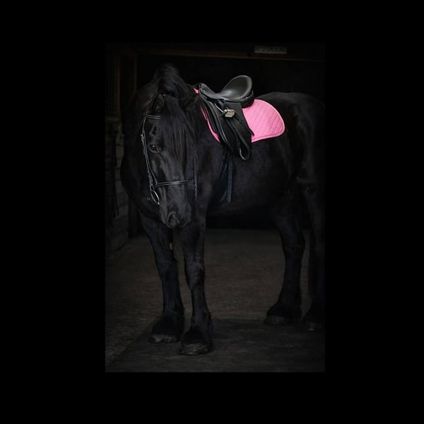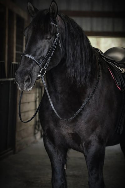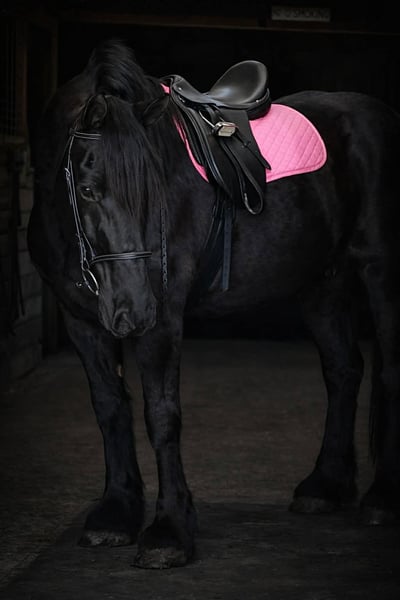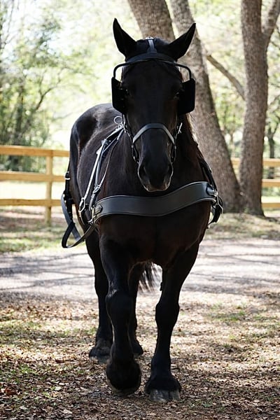 Dulce y experimentada yegua de 13 años de Percheron negro, apta para equitación y tiro