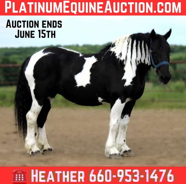 NLINE AUCTION Place your bids at www.PlatinumEquineAuction.com Starting Bid $3500 Auction ends June 15th, 2025 Need a new saddle? Check out White Rock Saddles on our website or Facebook! CLANCY The ultimate family horse! ❤️ Meet Clancy, a 13-year-old, 16.3h, Spotted Draft mare who is as solid as they come—big, stout, beautiful, and a total sweetheart. She’s 100% sound and sane, and safe enough for the entire family—literally! She’s gentle and steady enough to carry multiple riders at once, and she genuinely loves attention. ✨ Big, stout, and gorgeous with a kind eye ✨ More woah than go – calm, quiet, and safe ✨ Rides AND drives ✨ Has pushed cattle ✨ Not spooky – traffic, tarps, dogs? No problem! ✨ Rides bareback or saddled ✨ Hooks up to a cart for a peaceful drive ✨ Easy to catch, loves people, stands tied, great for baths ✨ No maintenance – easy keeper ✨ Great on trails, around the ranch, or just strolling the pasture Whether you’re looking for a dependable partner to teach the kids, a steady ride for guests, or just a kind soul to enjoy, Clancy is the one you’ve been waiting for. Located in Princeton, Missouri Call or text Heather Stark at 660-953-1476 for more info or videos! Need a new saddle? Check out White Rock Saddles on our website or Facebook! Safe, stunning, and sweet—Clancy is the kind everyone wants but few ever find ONLINE AUCTION Place your bids at www.PlatinumEquineAuction.com Starting Bid $3500 Auction ends June 15th, 2025 Need a new saddle? Check out White Rock Saddles on our website or Facebook!