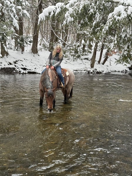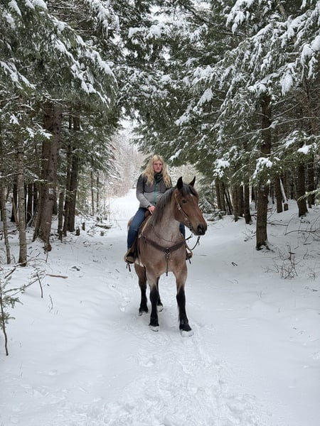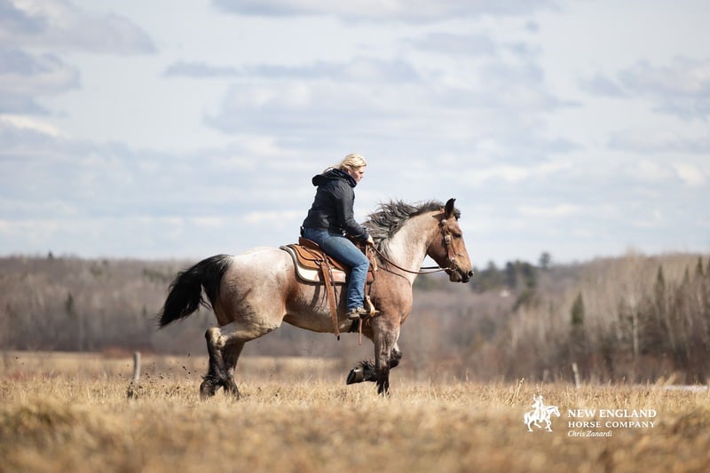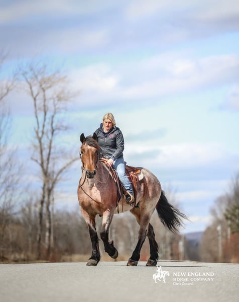 🌟𝑨𝒑𝒓𝒊𝒍 𝐀𝐋𝐋 𝐒𝐓𝐀𝐑 𝐋𝐈𝐍𝐄𝐔𝐏🌟 Happening now thru MONDAY | APRIL 6th - Available EXCLUSIVELY on HorseBid's website! For more details and to register visit: www.Horsebid.com CONSIGNOR CONTACT: New England Horse Company, LLC 207-745-7598 LOCATION: Corinth, ME BREED: Brabant REGISTERED: No COLOR: Bay roan HEIGHT: 16.3 AGE: 4 GENDER: Mare Ruby 4-Year-Old Bay Roan Brabant Mare | 16.3 HH If you have been searching for a mare that offers exceptional quality, eye-catching color, a kind disposition, and true versatility, allow us to introduce Ruby. Standing 16.3 hands, Ruby is a striking 4-year-old bay roan Brabant mare with all the ingredients to make a lasting impression. She is the kind of horse that is hard to overlook — with her substantial build, elegant way of moving, beautiful roan coloring, and sweet expression, she naturally draws attention wherever she goes. But Ruby is far more than just a pretty face. She has had quality professional training both inside and outside of the arena, and she carries herself with the kind of confidence, softness, and willingness that make her a true pleasure to ride. Ruby offers three balanced, correct gaits, is soft in the bridle, responsive to leg pressure, has a nice neck rein, and a big, correct stop. She is the kind of mare that gives you a polished feel while still maintaining a quiet, honest, and enjoyable demeanor. Ruby is also a wonderfully versatile riding horse. She is happy to go Western or English, and she has shown herself to be willing and athletic over fences as well. Whether your interests lie in the arena, out on the trail, or simply owning a mare that can comfortably step into a variety of jobs, Ruby offers the kind of foundation and attitude that make the possibilities feel wide open. One of Ruby’s most admirable qualities is her disposition. She is friendly, patient, and incredibly personable, making her just as enjoyable in the barn as she is under saddle. She has the kind of kind-hearted temperament that allows her to handle multiple riders and settle easily into a routine. She genuinely enjoys human attention and has the sort of affectionate, pet-like personality that is becoming harder and harder to find. Outside the arena, Ruby has been ridden extensively on the trail and has proven to be a steady, reliable, and confidence-inspiring partner. She will cross water, ride through traffic, tackle obstacles, and take in the unexpected things that come with riding outside with composure and willingness. She has seen enough to be enjoyable and dependable, yet still remains young enough to continue developing into something truly exceptional. Ruby also has the everyday manners that make ownership easy and enjoyable. She loads, ties, and stands quietly, and she is the kind of mare that is pleasant to have around in every setting. This is the type of mare that is becoming increasingly difficult to find — one with size, beauty, rideability, versatility, and a truly kind nature all wrapped into one package. Ruby has been an absolute joy to own, and we believe she has all the qualities to make someone an outstanding long-term partner. We encourage you to call or text with any questions and would love to have you come try her in person. If you are unable to make the trip, we are also happy to show her via live video. Ruby is a very special mare, and we are excited for her next person to appreciate everything she has to offer. 207-745-7598