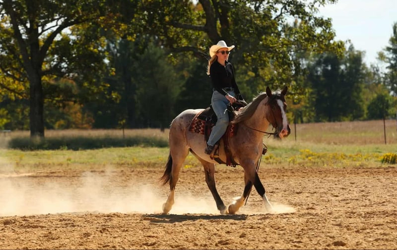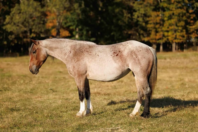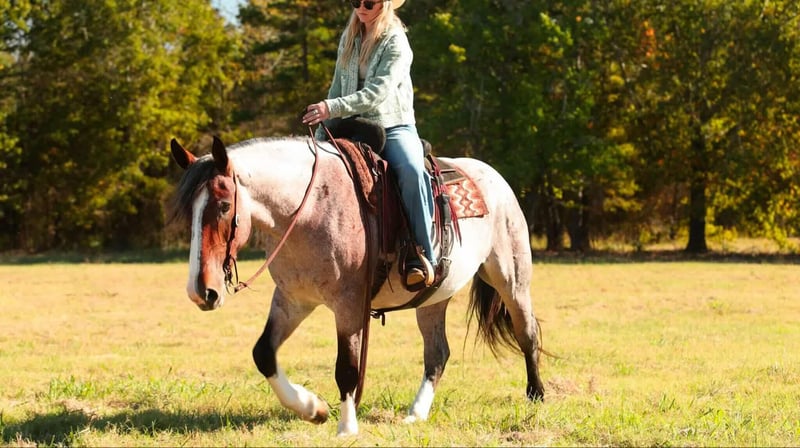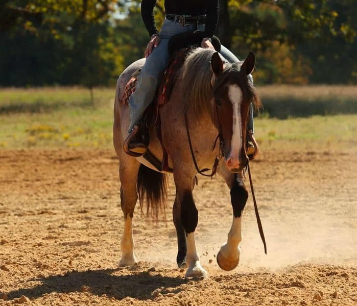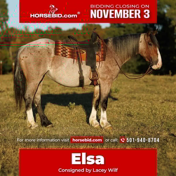 ⚜️𝐓𝐇𝐄 𝐅𝐀𝐋𝐋 𝐇𝐄𝐑𝐈𝐓𝐀𝐆𝐄 𝐂𝐋𝐀𝐒𝐒𝐈𝐂⚜️ Happening now thru MONDAY | NOVEMBER 3rd - Available EXCLUSIVELY on HorseBid's website! For more details and to register visit: www.Horsebid.com CONSIGNOR CONTACT: Lacey Wilf 501-940-8704 LOCATION: Quitman AR BREED: Brabant cross REGISTERED: No COLOR: Bay Roan HEIGHT: 15 AGE: 4 GENDER: Mare Elsa is a 4-year-old draft cross mare standing a solid 15 hands and weighing an impressive 1,300 pounds. Substantial and beautifully made, she has the kind of bone, balance, and presence that immediately draw the eye—broad through the chest, deep in the heartgirth, and muscled from hip to shoulder. Her calm confidence and composed nature make her an easy one to appreciate both in harness and under saddle. Broke to drive the very best, Elsa harnesses like a seasoned pro—standing patiently to hitch, staying light and responsive to the lines, and working with steady rhythm and focus whether she’s on the road or in the field. She’s strong, forward when asked, and always willing, making her a dependable partner for any driving job. Out on the trail, Elsa truly shines. She’s confident and surefooted through all kinds of terrain—crossing water, bridges, brush, and uneven ground without hesitation. She handles steep hills and open country with balance and ease, staying calm around wildlife, traffic, and farm machinery. No matter where you take her, she keeps the same steady mind and willing attitude, making her a joy to ride in any setting. In the arena, Elsa picks up both leads easily, carries herself soft in the bridle, and has a naturally balanced handle that makes her smooth and enjoyable to ride. She’s responsive without being reactive and comfortable in both arena work and outside miles. On the ground, she’s the kind that makes daily handling simple and stress-free. Elsa is easy to catch, patient to tack, bathe, and shoe, loads and hauls quietly, and stands tied without fuss. Every interaction with her reflects her steady nature and good manners. With her impressive build, elegant way of going, and steady, level mind, Elsa represents the very best of a true draft cross—strong, versatile, and beautifully composed in every sense of the word.