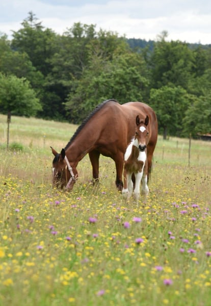 Vente d'une élégante jument de Speed Racking Horse, née en 2020, dans une magnifique teinte de brun. Elle mesure 1,53 m et possède de bonnes bases. Elle est quadruple allures, avec un pas très confortable, un trot fluide et clair, ainsi qu’un galop merveilleux, oscillant entre rythme détendu et vitesse rapide, selon la demande. En selle, elle privilégie naturellement le trot, le Tölt doit être sollicité et travaillé, sinon elle retombe rapidement dans le trot. En tant que poulain, elle a déjà été manipulée en main, lors de nombreuses promenades pour découvrir son environnement, avec de petites exercices intégrés. À l’âge de 3 ans, je suis montée dessus de façon ludique à plusieurs reprises, ce qui a facilité son apprentissage du débourrage : elle a été facile à monter et à partir en balade. Elle connaît le travail à pied avec des exercices de latéral, la mise en selle, la cession de tête, l’arrière-main, le pas et le trot. Tout cela peut également être demandé en selle. Elle réagit de façon fine et fiable aux aides du cavalier. Nous faisons principalement des sorties en extérieur. Elle connaît les chiens, le trafic routier et reste calme même face à des camions. Elle est très attentive en selle : si elle a peur de quelque chose, elle s’arrête et l’observe d’abord. Elle ne s’enfuit pas. Elle a une attitude amicale et ouverte, vient volontiers vers l’humain et aime participer. Elle donne souvent une sensation de sécurité à son cavalier, même si, en raison de son âge, elle a encore besoin de la protection de son humain. C’est pourquoi elle est actuellement plutôt réservée aux cavaliers expérimentés. Ma fille la monte uniquement en longe. Elle a déjà donné naissance à un poulain de très belle apparence. Si Holy a éveillé votre curiosité, n’hésitez pas à me contacter pour plus de questions. Une visite est, bien sûr, souhaitée.