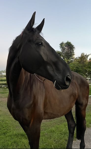 • Approximate height: 1.80 m (16.1 hh) • Loving and affectionate horse that needs a close bond with its handler • Dressage level solid E/A • For variety, he is familiar with cavaletti, pole work, lunging, and small jumps • Also jumps courses, although this has not been actively trained in recent months • Experience in terrain both with a partner and alone; very well-behaved in the field • Not suitable for beginners or nervous riders, as he needs further training in dressage and occasionally jumps sideways • No problem with free movement areas or turnout paddocks We are looking for a loving home where he can be supported and simply cared for. He should receive good variety and be regarded as a family member. We can also imagine him happily in an open stable or active stable environment. Currently, he is kept in box stalls with daily turnout.