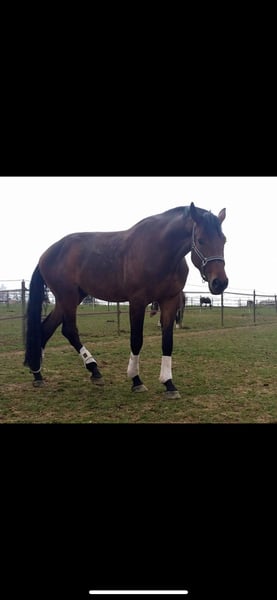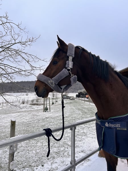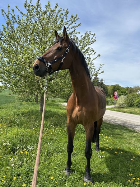After much serious consideration, I have decided to sell my 14-year-old Württemberger gelding, Harald. I have owned him since 2024. He stands at 186 cm (approximately 16.1 hh). His previous owner, who had him since foalhood, had him competing up to dressage level L. Since I’ve had him, he has only been ridden for leisure, and he was presented by my former riding partner at an A-level dressage competition. He performs his dressage movements without any issues, but he does need a rider who can handle him properly. Harald is a big cuddle bug and loves to be spoiled. His preferred gait is often hard to find, as he tends to be more of a relaxed, easygoing ride. He is also quite calm in the terrain and prefers a gentle pace. In early 2024, he tore his suspensory ligament, but it has now fully healed. All veterinary examinations and treatments at that time confirmed his recovery. Since September 2024, Harald has been living in an active stable with 23 other horses, including geldings and mares. He is four-way shod and has regularly been seen by a physiotherapist. Vaccinations and dental care are up to date. I am not looking to sell him to someone who intends to use him as a mere sport horse or riding machine. Accessories can be purchased together for €1,500. The saddle has recently been reflocked.