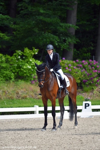 Zum Verkauf steht mein 9 jähriger DSP Wallach, der sich seit seinem ersten Lebensjahr in meinem Besitz befindet. Er ist in der Dressur bis zur Klasse M ausgebildet und hat eine tolle Arbeitseinstellung, mit der noch viel mehr zu erreichen ist. In jungen Jahren konnte er erste Turniererfahrung in Dressurpferde-A-Prüfungen sammeln. Er hat Spaß an Stangebarbeit, Sprüngen und Bodenarbeit. Als Jungpferd war er mit mir in einer Gruppe im Gelände. Nicht für Reitanfänger geeignet. Rufen Sie mich gerne an. Aktuelle Röntgenbilder liegen vor.