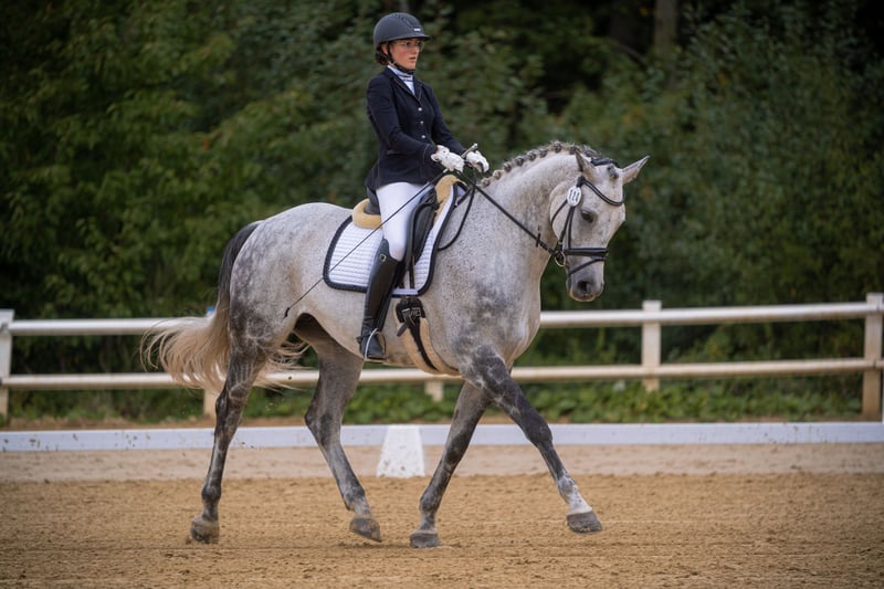 With a heavy heart, I am looking for a new home for my 12-year-old Württemberger mare. Milly has been successfully presented at competitions up to L-level with a double bridle and shows herself to be well-behaved and relaxed in daily handling. Under saddle, she is a strong-willed but reliable partner – with the right person by her side, she will go through thick and thin. She is blacksmith and loading friendly, knows herd living, individual paddocks, and the horse walker. In terms of social behavior, she is dominant and strong-willed. So far, she has almost always established herself as the lead mare in the herd, which has caused her stress in larger groups. In smaller groups or in manageable conditions, she feels significantly more comfortable and is more balanced. Due to her double lineage (Louis de Funes x Monsum), I could also envision the option of using her as a broodmare. I wish for a loving home with plenty of time for being with the horse, daily turnout in a small group, and plenty of hay. Milly is not a beginner's horse but offers a wonderful opportunity for someone who can give her patience, time, and affection. Currently, she is in a box with a window, goes to the horse walker daily, and regularly has access to pasture or paddock. Current X-rays are available. (18 images from September 2025) ➡️ A good home is more important than the price – only in the best hands.