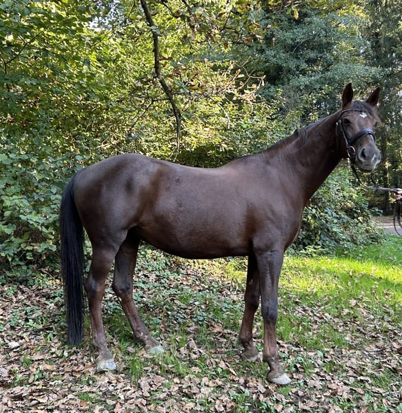 Donata ist eine hübsche, 17 jährige Dunkelfuchsstute, tragend für 2026 von Dressurhengst La Vie. La Vie ist inzwischen im Sport international erfolgreich. Auch seine Nachkommen machen von sich Reden. Donata hatte bereits mehrere Fohlen, die alle sehr menschenbezogen, hübsch und korrekt gebaut sind und sich gut bewegen. Die Geburten waren immer komplikationslos.