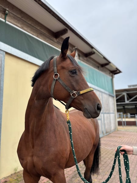Due to a reduction in our horse herd, we are offering directly from the breeder: A stunning, well-moving 6-year-old brown mare with a slight turn of the right front leg (see photos). She has foaled once so far. Born and raised with us, she has been absolutely robust and healthy to date. Private sale as a companion or groundwork horse. Only to a caring owner seeking a paddock box and turnout. Please contact us via WhatsApp at +49 173 8500776.