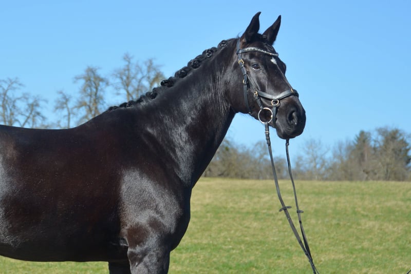Zum Verkauf steht hier eine bildschöne Rappstute mit viel Qulität und Eleganz. Sie ist eine Enkelin von Totilas und Donnerschlag und verfügt über beste Anlagen für die höheren Klassen der Dressur. Sie punktet durch 3 sehr gute Grundgangarten und ein hohes Maß an Leistungsbereitschaft und Sensibilität. Ich habe sie 5 jähr. vom Züchter gekauft und angeritten. Seitdem hat sie eine korrekte und vielseitige Ausbildung genossen. Sie ist longiert, kennt Stangen, Cavalettis und kleinere Sprünge. Sie läuft jetzt auf L-Niveau und wird täglich besser. Auf Grund ihrer Sensibilität und Charakterstärke, sucht sie eine erfahrene, geduldige und feine Reiterin, die ihre Qualität zu schätzen und zu fördern weiß. Ein AKU liegt noch nicht vor.