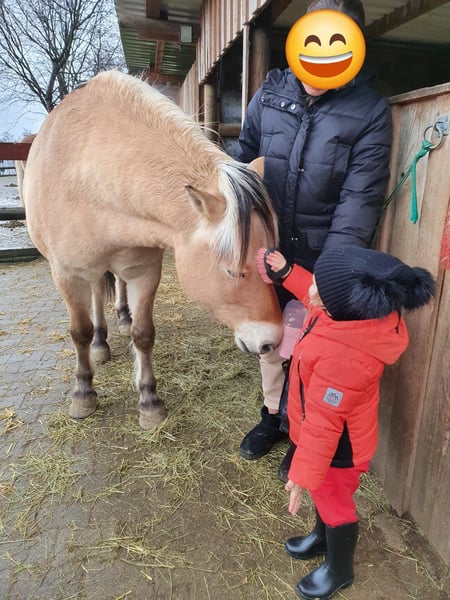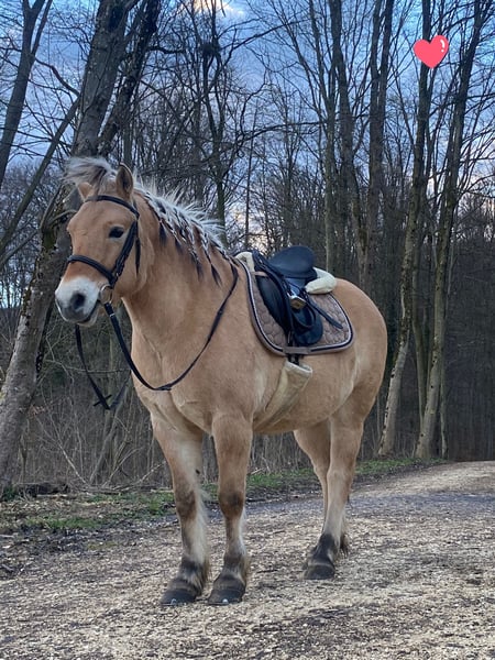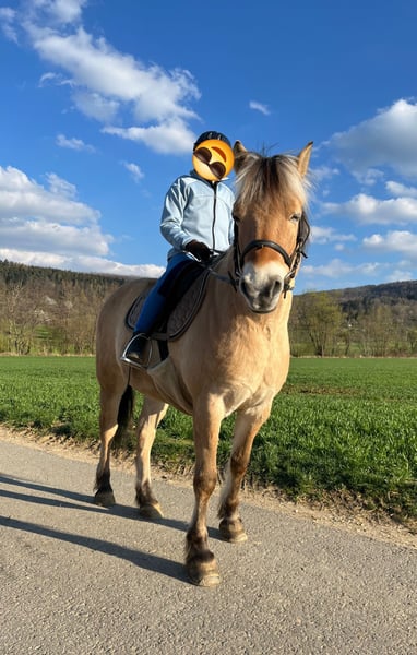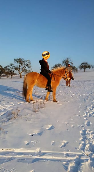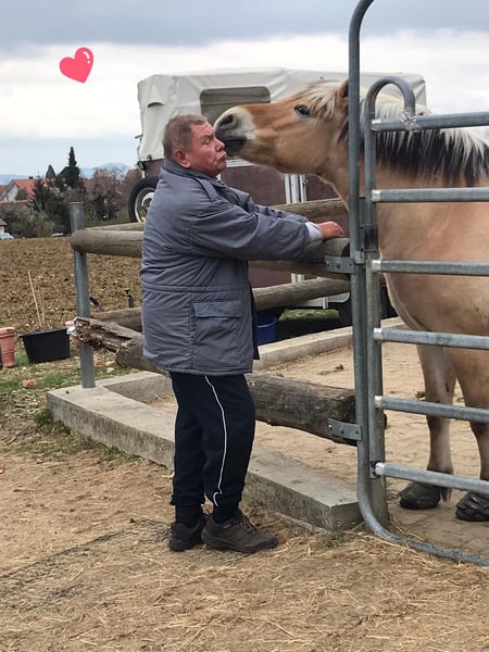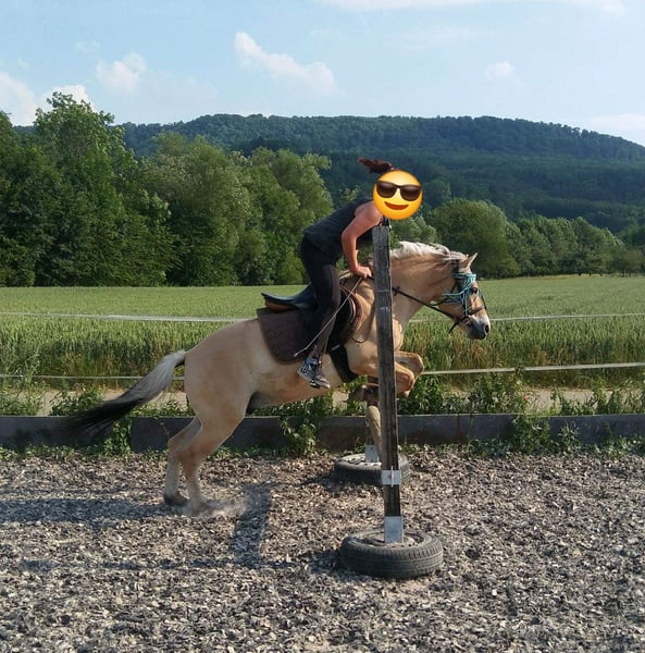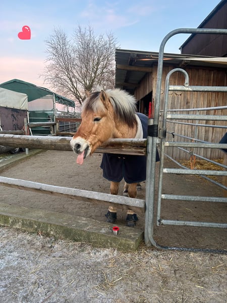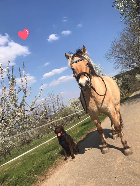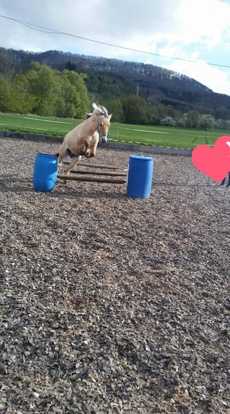 Delon... ein liebenswerter Kuschelbär mit einem einzigartigen Charakter. Ein liebevoller Lausbub, wie er im Buche steht. Delon ist extrem menschenbezogen und verschmust, liebt jeden, er interagiert und sucht ständig den Kontakt zum Menschen. Durch seine verspielte Art ist er gerne und jederzeit "behilflich", dir die Jacke aufzumachen, die Mütze abzunehmen oder die Tasche zu tragen. Delon ist für jeden Quatsch zu haben und lernt deshalb auch gerne und schnell, zb Zirkuslektionen. Wir können uns Delon auch sehr gut als Therapiepferd vorstellen, er schafft es, jedes Herz zu öffnen. Auf kleine Kinder geht er neugierig, aber sanft und vorsichtig zu. Delon wird bei uns freizeitmäßig geritten und geht auch 2x in der Woche im Unterricht mit (er wird nicht an Reitschulen verkauft!). Hier ist er der Liebling der Reitschüler. Dressurmäßig ist er sehr gut ausgebildet, läuft fleißig vorwärts auf dem Platz (auch nur mit Halsring) und springt auch. Ins Gelände geht er alleine sowie in der Gruppe und ist verkehrssicher. Durch seine entspannte Art wäre er vermutlich auch was für ängstliche (aber sichere) Reiter oder Wiedereinsteiger. Für reine Anfänger allerdings ungeeignet, da er im Gelände manchmal "vorschlagen" möchte, welchen Weg man denn jetzt nimmt. Für geübte Reiter kein Problem dies zu händeln, für Anfänger schon. Delon steht derzeit im Offenstall mit 2 Stuten, stand aber auch schon mit in einer gemischten Herde. Er ist ranghoch, aber generell gut verträglich und sozial. Künftige Haltung: Bevorzugt Offenstall, evtl Paddockbox. Keine reine Boxenhaltung, er braucht den Kontakt zu anderen Pferden! Keine Reitschulen! Zubehör wie Sattel usw kann gerne miterworben werden.