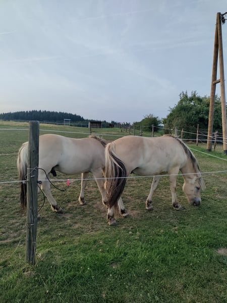 Due to age, we are selling our two Fjord geldings from 2023 exclusively to caring owners who can provide plenty of turnout and pasture time. Both geldings have full papers, are tall and strong. They have been together since they were young, so we would like to sell them only as a pair. For more information, please contact us by phone at 0151 681 95 994. The price is for both horses together.