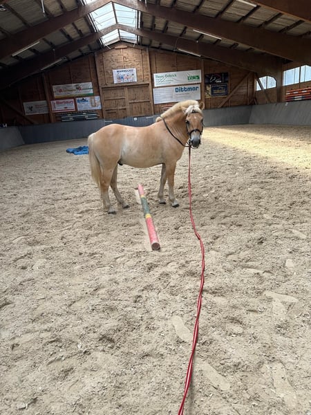 Fjordpony Simba – Bildhübsches Charakterpferd mit Potenzial sucht passenden Menschen Name: Simba Alter: 4 Jahre Stockmaß: Ponymaß ca 140 Rasse: Fjordpony, polnische Abstammung Ausbildung: Ging bereits im Schulunterricht und im Gelände, kennt Grundlagen Wir suchen für unseren 4-jährigen Fjordwallach Simba ein neues, erfahrenes Zuhause. Simba ist kein Anfängerpony und kein typischer Mitläufer – er braucht eine klare Bezugsperson, die konsequent, fair und pferdeerfahren ist. Er ist intelligent, neugierig und zeigt viel Potenzial – aber er testet auch gern mal seine Grenzen. Ins Gelände reiten kennt er auch, ist hier auch sehr mutig, aber seines Alters entsprechend am besten mit einem erfahrenem Pferd zusammen. Wir glauben sehr daran, dass Simba ein tolles Freizeitpferd wird, allerdings ist so ein junges Pferd mit seinem Charakter und den wechselnden Reitern für unsere Reitkinder im Verein nicht das Passende. Umso mehr wünschen wir uns für ihn ein Zuhause, wo er weiterhin gefördert und vielseitig gefordert wird! Bei ernsthaftem Interesse gern eine WhatsApp an folgende Telefonnummer: 017664424046. Alles weitere wird dann telefonisch geklärt.