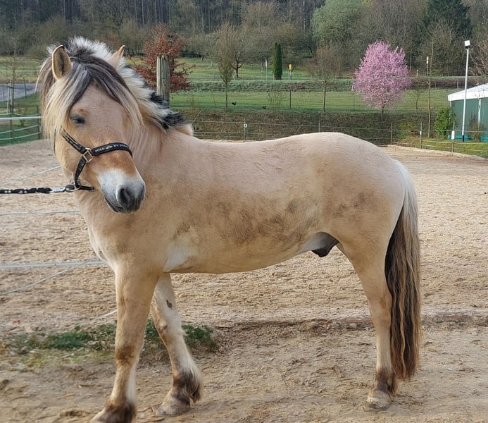 Verkaufen schweren Herzens unseren 4- jährigen Fjord- Wallach im Endmaß. Er ist angeritten, achtsam und ein wirklich toller Kerl. Wir trennen uns nur von ihm, da er leider mit unseren großen gemischten Herde nicht klar kommt. Da er noch am Anfang seiner Ausbildung steht, ist ein Probereiten nur sehr eingeschränkt möglich. Wir verkaufen ihn ausschließlich in kompetente, jungpferdeerfahrene Hände in artgerechte Haltung. Schmiede- und verladefromm, geimpft und entwurmt,Platz vor Preis Ich antworte nur auf aussagekräftige, nette Nachrichten :-) Für Schnellentschlossene: bei Abholung bis zum 25.4.: 7000€