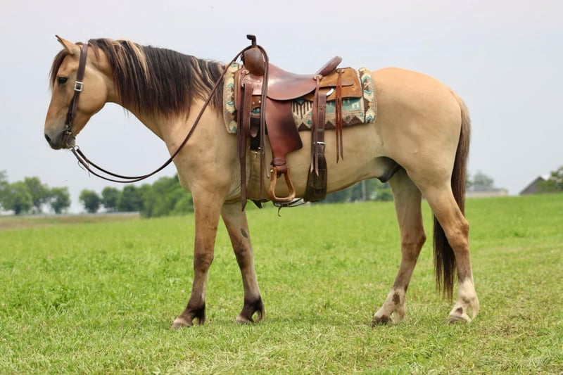 ONLINE AUCTION Place your bids at www.PlatinumEquineAuction.com Starting Bid $3500 Auction ends October 6th, 2024 Need a new saddle? Check out White Rock Saddles on our website or Facebook! Elmer is a unique 15.2 hand Fjord/QH cross gelding. He is 6 years old and as cool as they come! He walks, jogs, and lopes nicely in the arena and outside. He has countless hours of experience on a large cattle ranch in MS. He was the owner’s main mount. He will neck rein, side pass, open and close gaits, and of course do necessary work with the cows from doctoring to loading trucks. You can ride him bridleless, he has a nice handle, and is a joy to have in the barn. He is quiet and gentle and rides the same everyday. He is also excellent on the trails. He crosses natural obstacles with ease including water, bridges, banks, and logs. We have ridden Elmer in town and is traffic safe including motorcycles, scooters, and baby strollers. He loves people walking up and petting him too. He stands well for the farrier and vet. Everywhere we take him, Elmer catches the attention of others for his handsome looks and cool demeanor. Don’t miss out on a great, young gelding like him! Call Sammi Waugh 704-798-5497 Located in Brooksville, KY. ONLINE AUCTION Place your bids at www.PlatinumEquineAuction.com Starting Bid $3500 Auction ends October 6th, 2024 Need a new saddle? Check out White Rock Saddles on our website or Facebook!