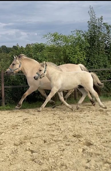 From my longstanding, small but high-quality breeding program, I am pleased to offer some of my foals. Talis is a very well-behaved, friendly foal who is very human-oriented. He loves grooming and cuddling and is equipped with good movement qualities. I am confident that he will surpass his parents in size, reaching at least 1.50 meters. He was raised in a natural environment with young horses, has been introduced to everything appropriate for his age—including walks with his mother, cars, tractors, dogs, and children—and has already experienced being transported in a trailer. Of course, at his age, everything is still not fully established, but he has already learned to handle these situations and shows curiosity rather than fear. Hoof care is as natural to me as his first vaccinations and appropriate deworming. His mother was Reserve Champion at the foal show and the day’s winner at the mare licensing, earning her premium qualification. His father is an elite, federal premium, and performance stallion. Both parents are of excellent character, easy to handle, and resilient. In addition to him, there is an older full brother (see picture 2) available for sale. Delivery only to responsible, caring owners in appropriate, species-appropriate stabling. If you would like to get to know one of them, I look forward to hearing from you. Preferably by phone at 0176 45893366.