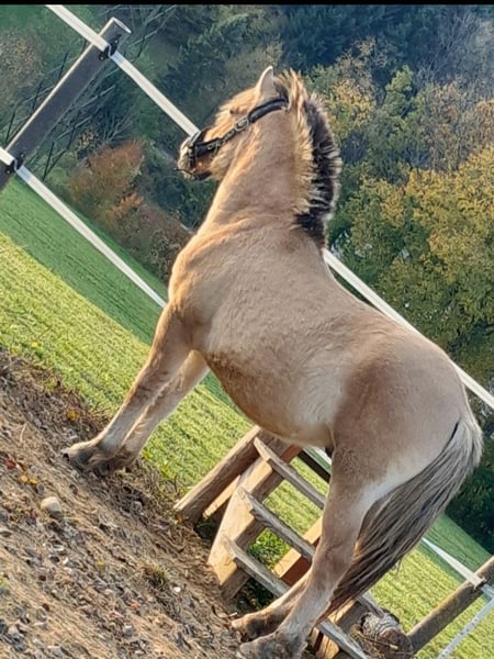 Verkaufe meinen Fjordhengst vom 6/2024 aus gesundheitlichen Gründen meinerseits. Klosterhofs Baltic ist ein total verschmusster Hengst, der vorigen sommer seine Jugend auf der Sommerweide genießen konnte. Bestens sozialisiert. Da er aus einer hervorragenden Zucht in Deutschland kommt, wäre er auch sehr interessant für die Zucht und die Körung. Kann aber auch auf Wunsch und Kostenübernahme des Käufers bei mir noch kastriert werden. Sein Vater ist elite und bundesprämienhengst Bam und seine Mutter Staatsprämienstute Aleska. Sie war Siegerin der Elitestutenschau und gewann die gerittene und gefahrene